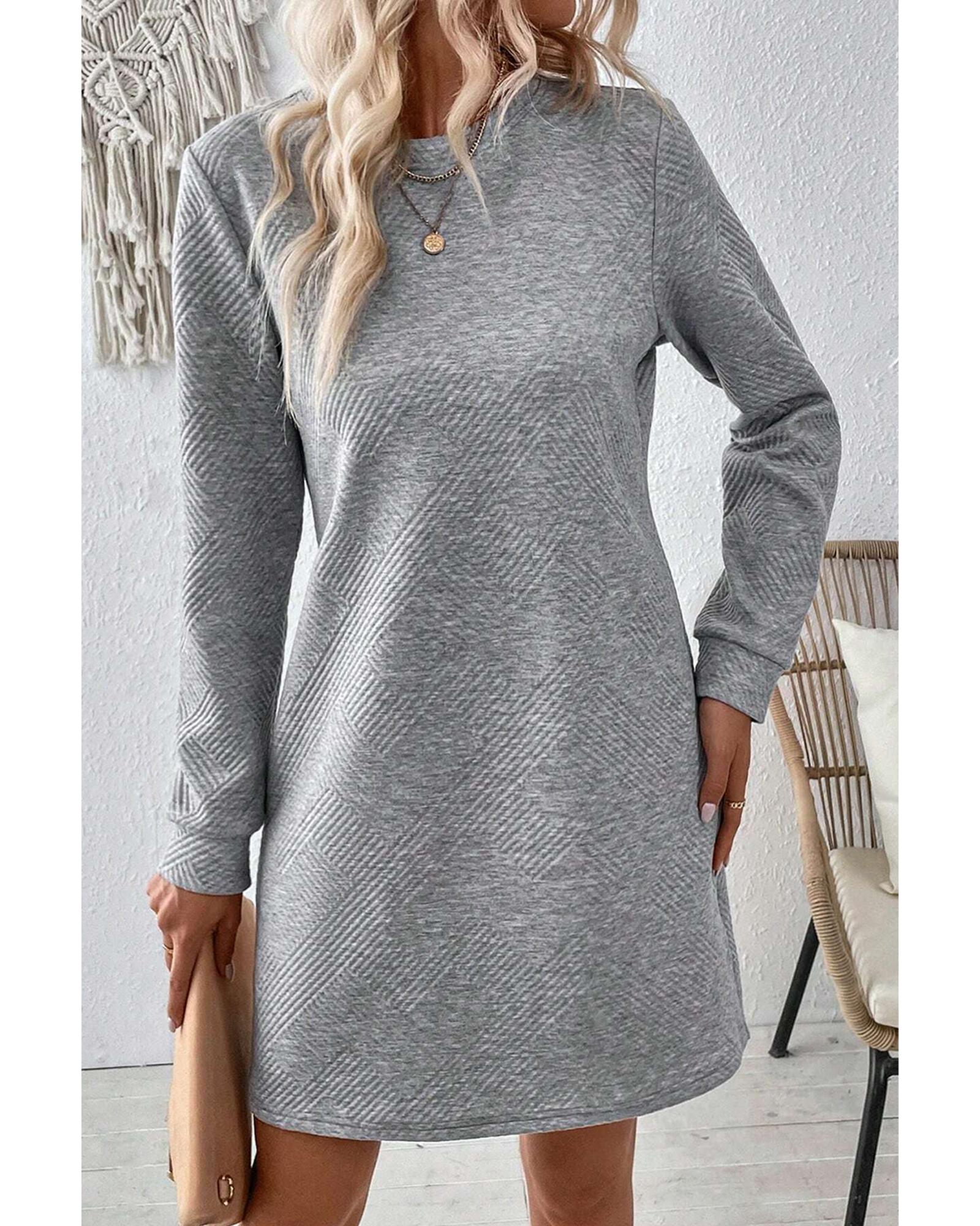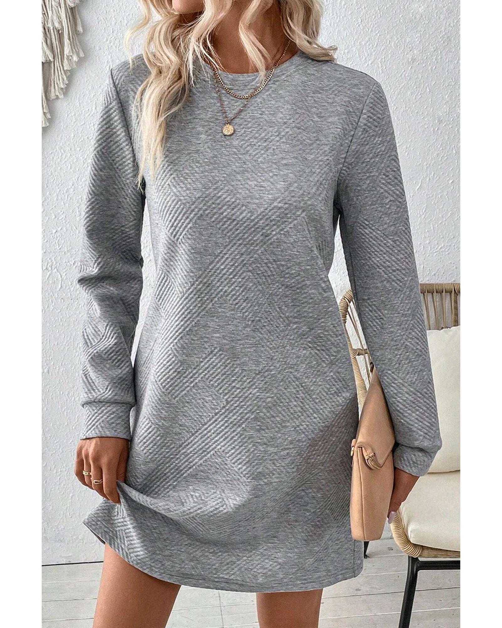 - Gray Solid Color Textured Long Sleeve Shift Dress