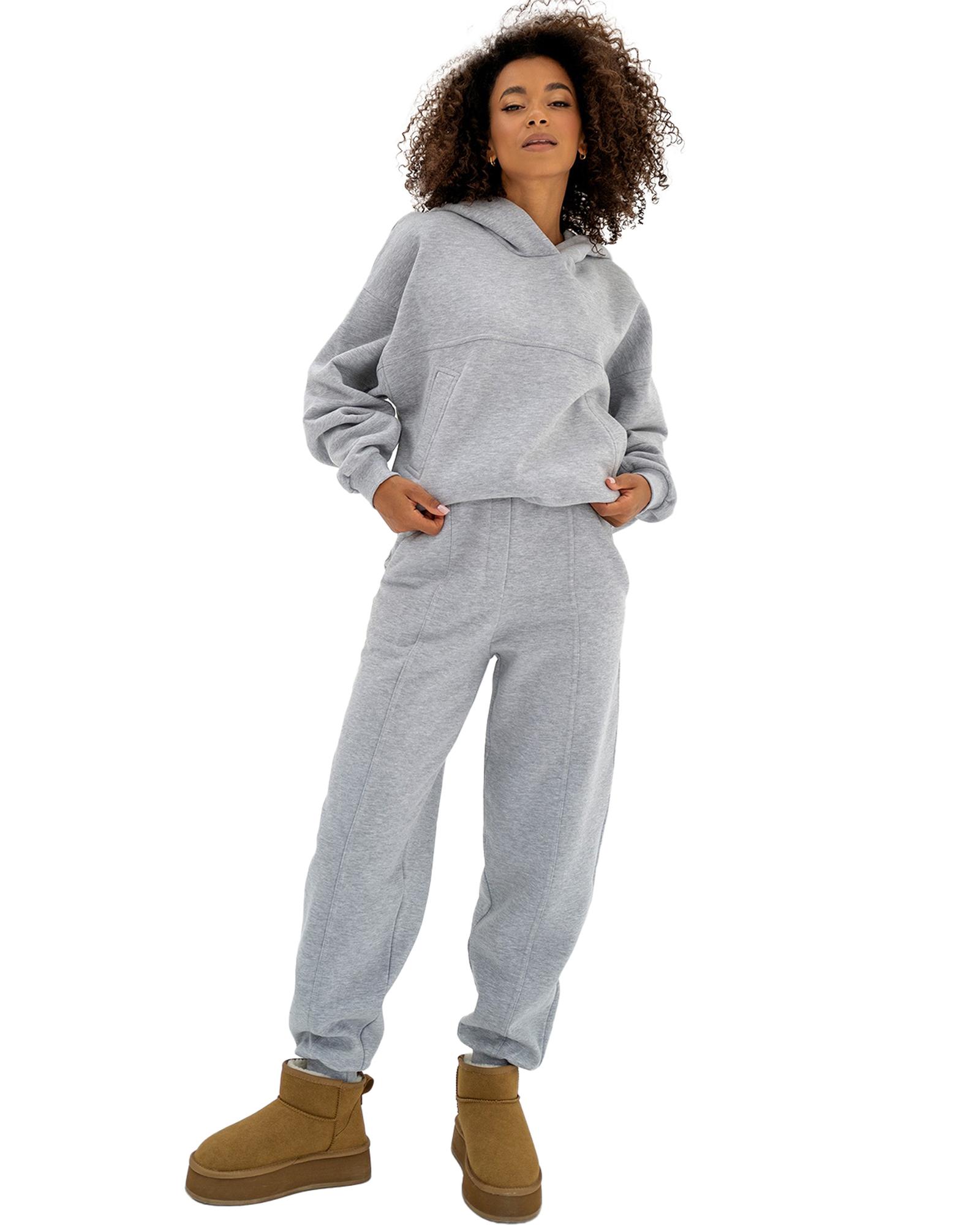 • Gray Solid Exposed Seams Hoodie and Joggers Activewear Set