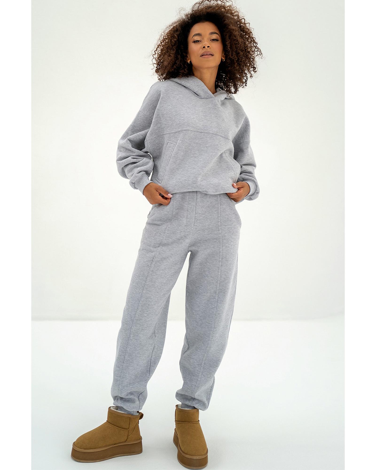 - Gray Solid Exposed Seams Hoodie and Joggers Activewear Set