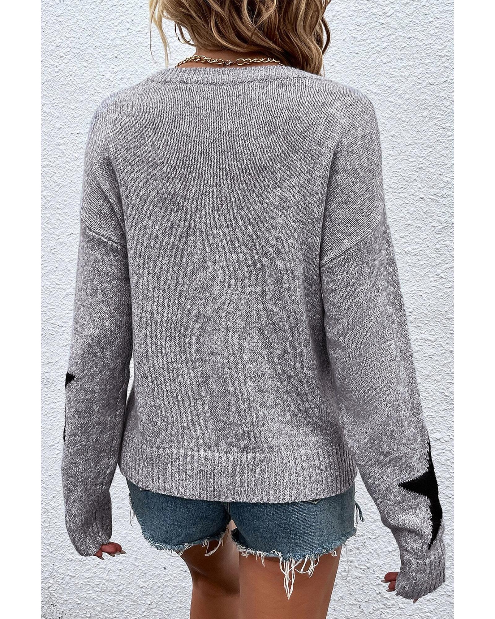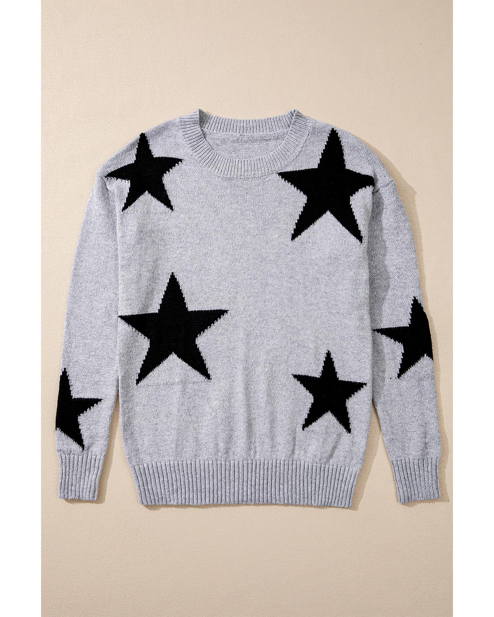 Gray Star Pattern Drop Shoulder Sweater – XL