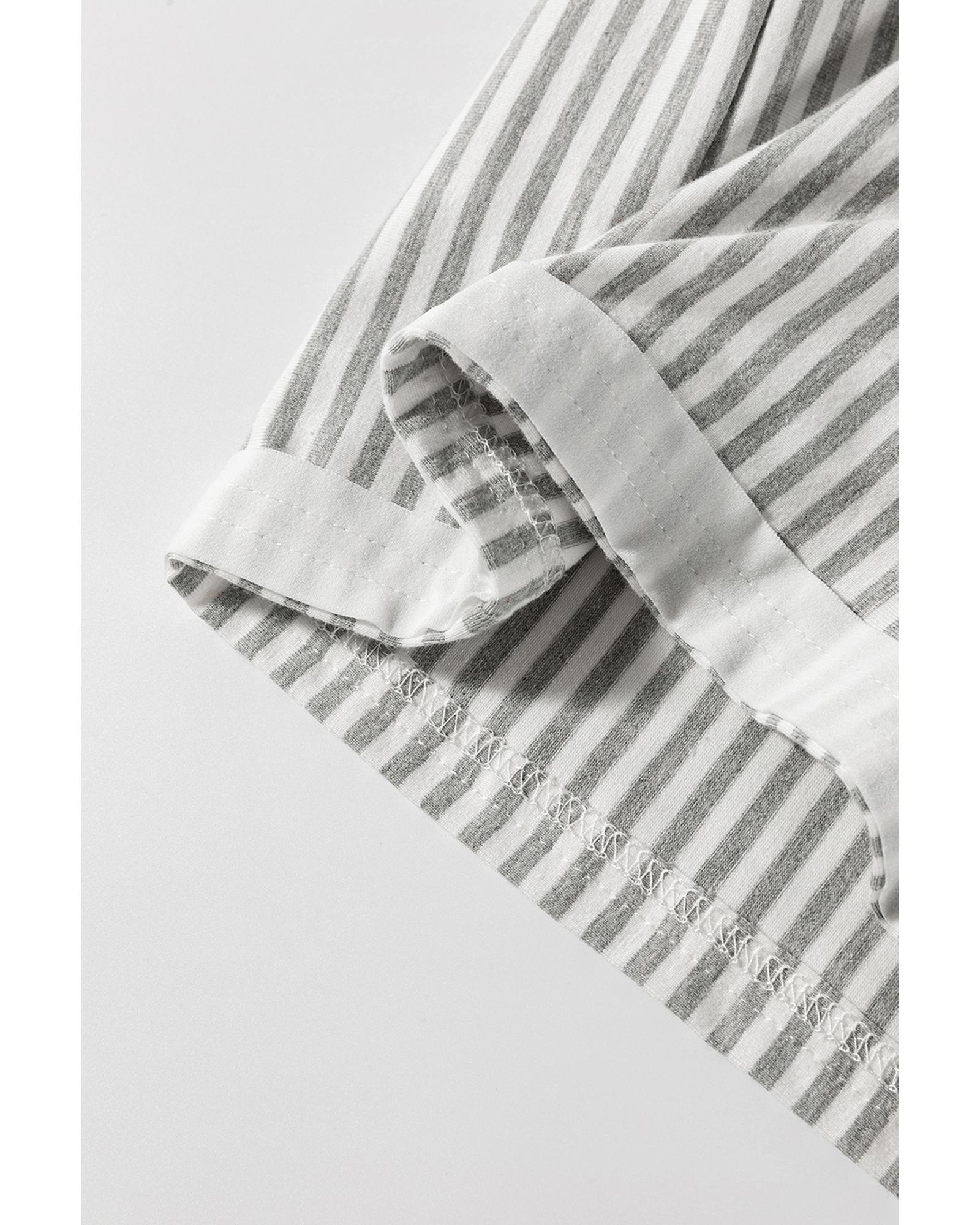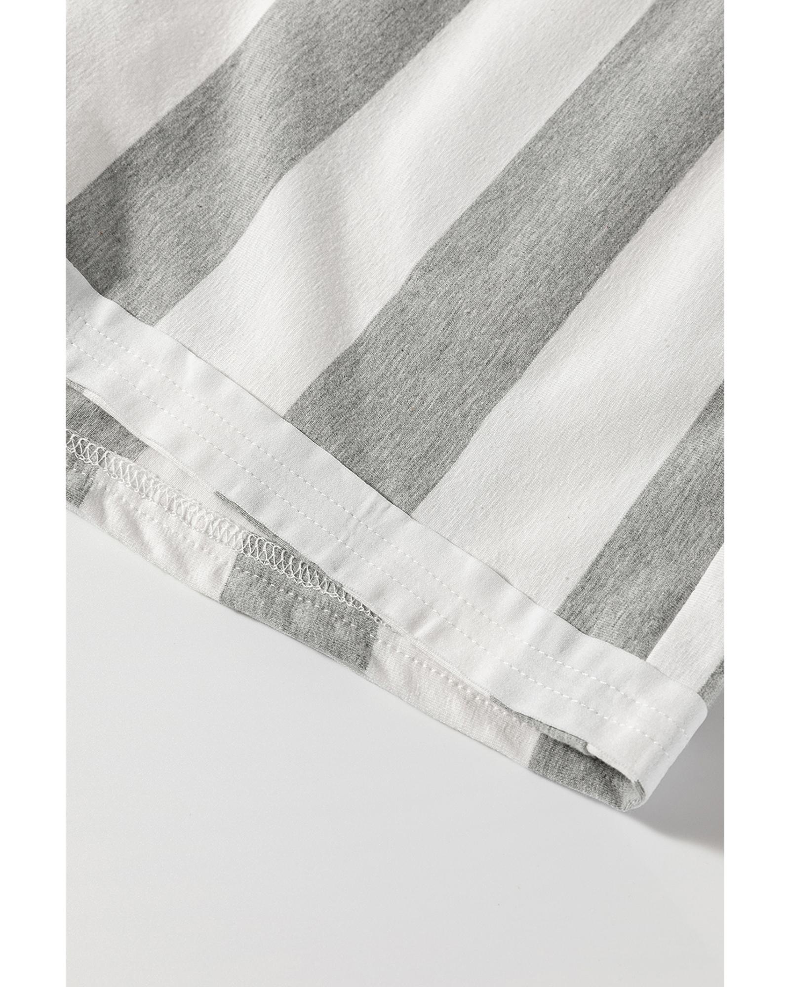 Gray Stripe Mixed Print Short Sleeve Top and Pocketed Shorts Set – M