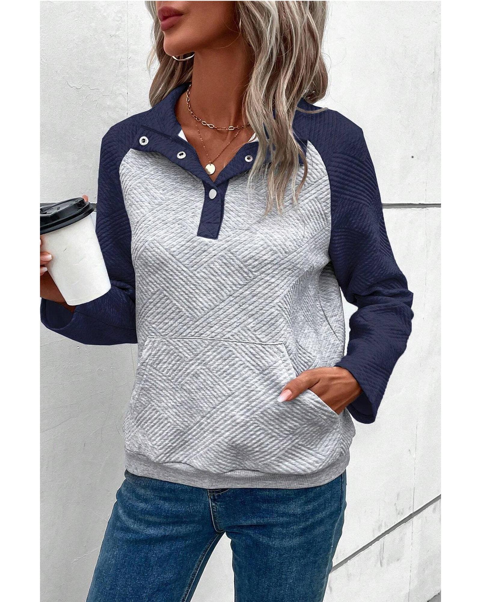 Gray Textured Contrast Splicing Raglan Sleeve Top – S