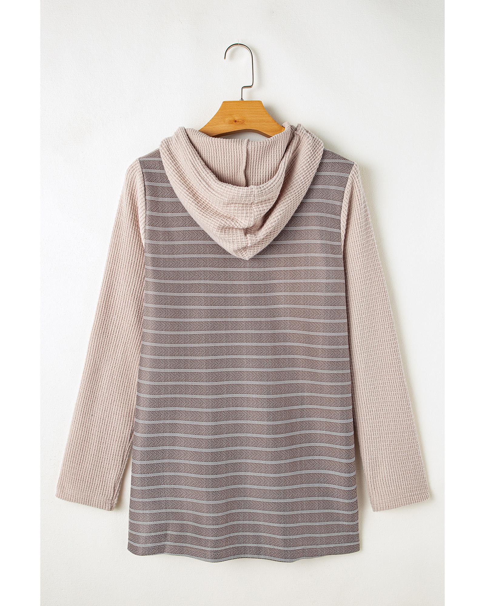 Gray Textured Knit Colorblock Striped Henley Hooded Top – S