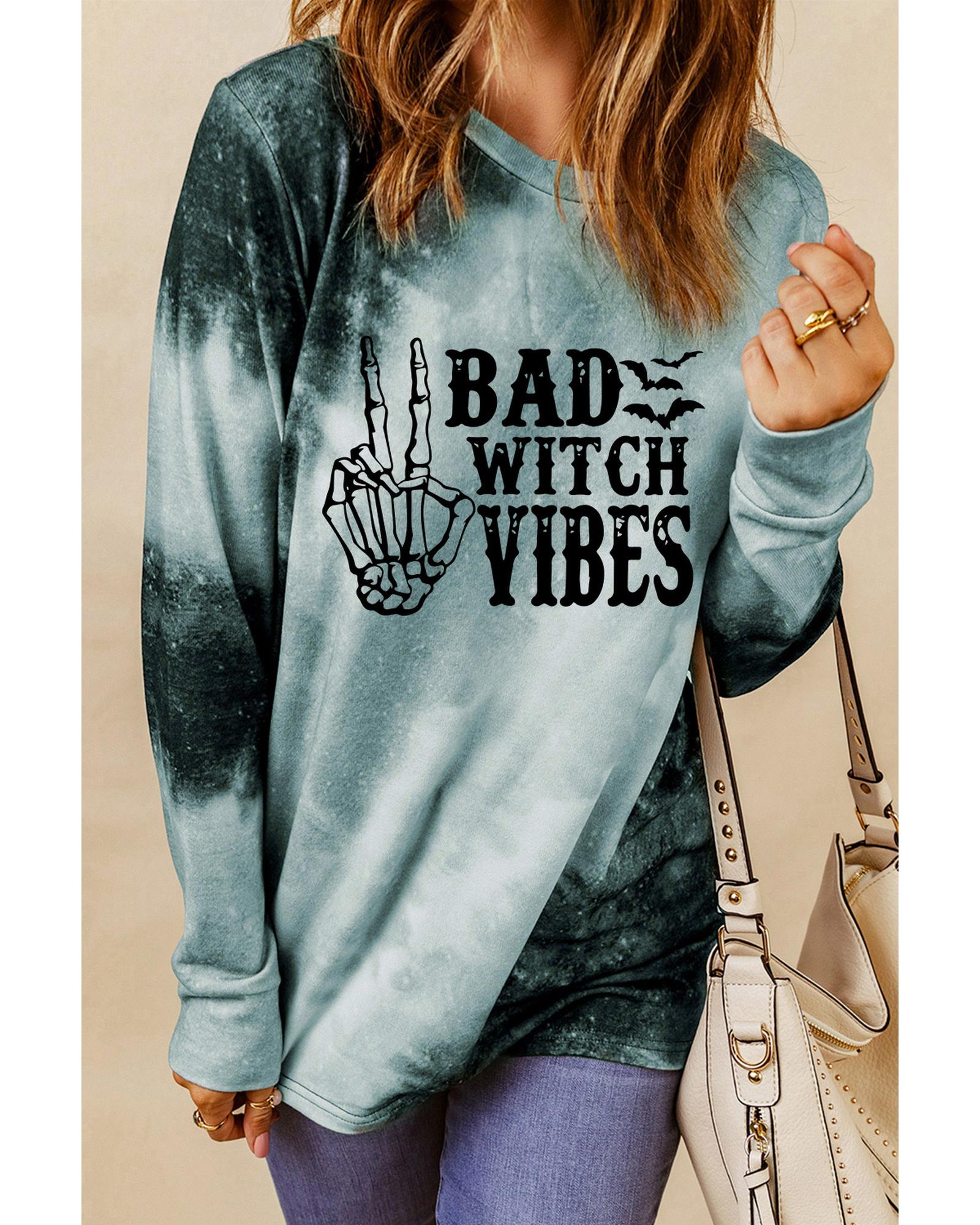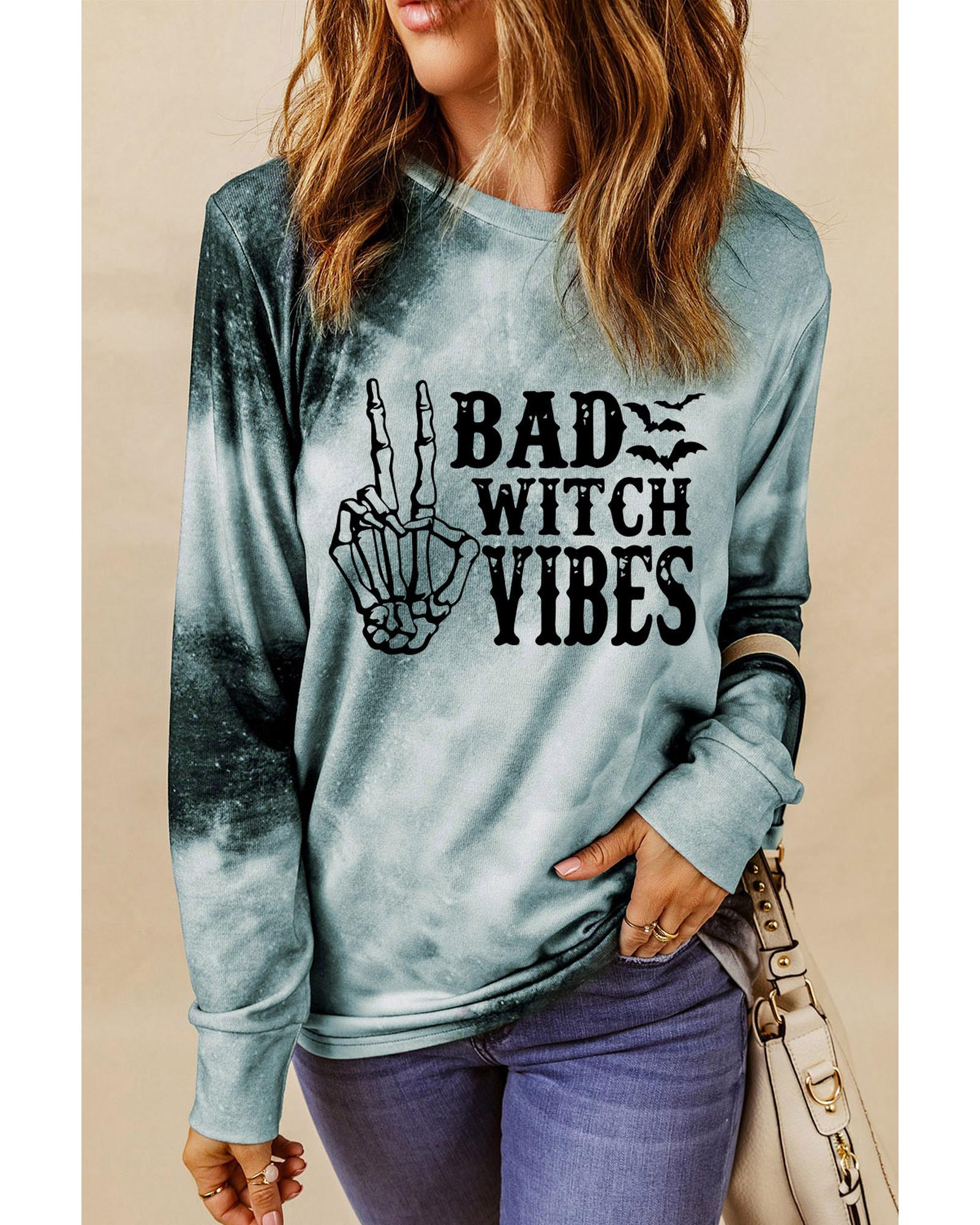 Gray Tie Dye BAD WITCH VIBES Graphic Long Sleeve Top – M