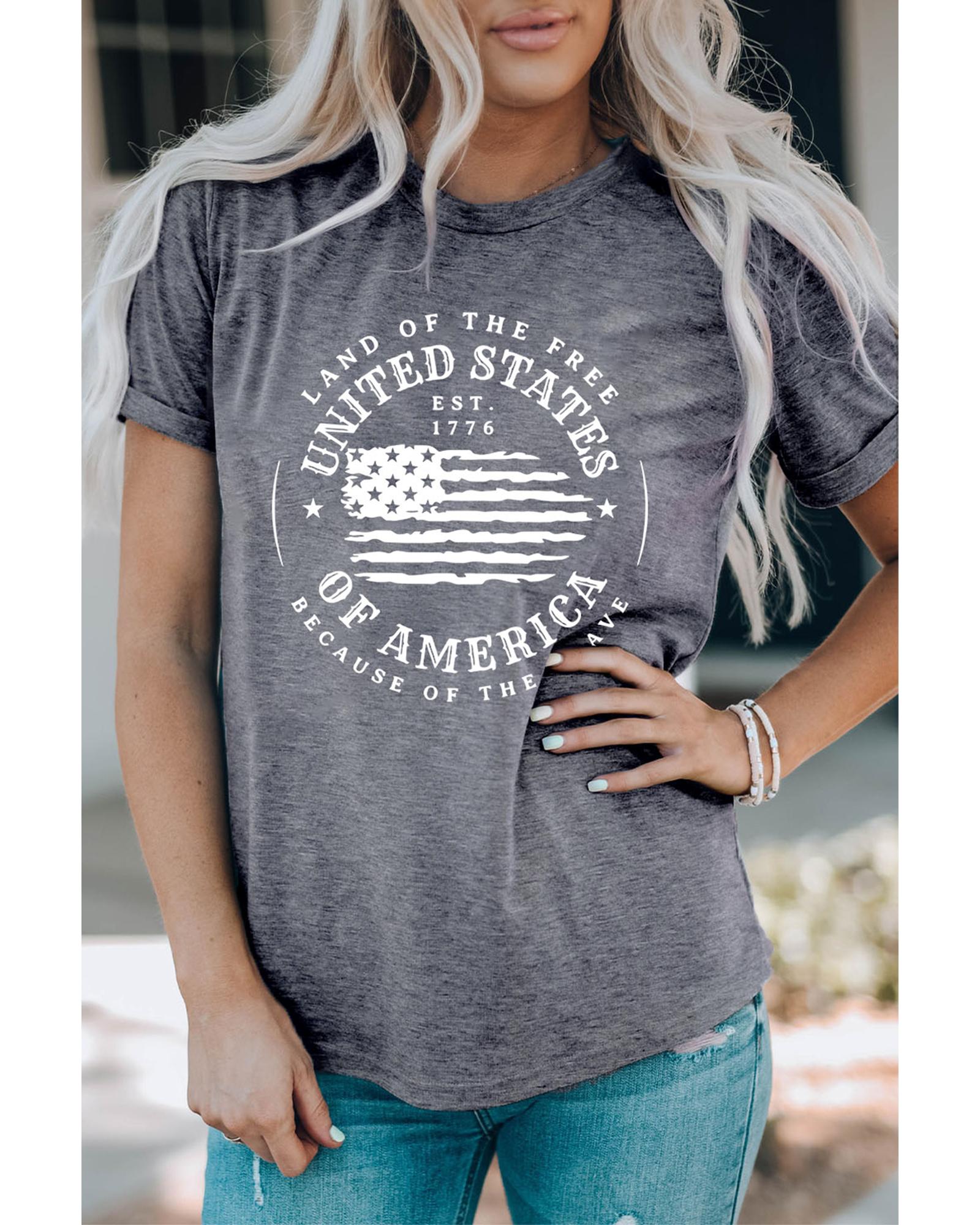 Gray United States Of America Flag Graphic Print T - Shirt Short sleeve t