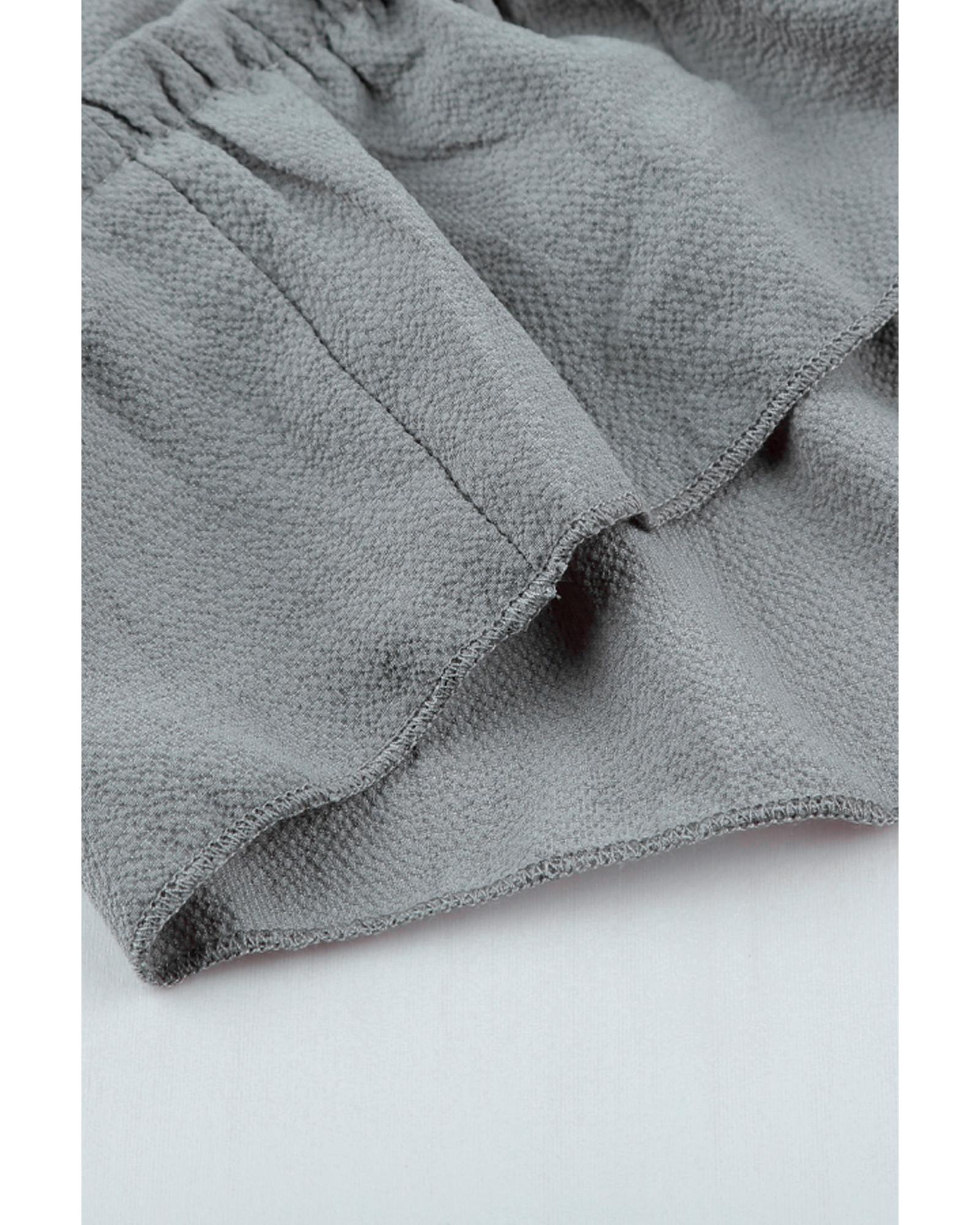 Gray V Neck Long Sleeve Ruffle Tiered Mini Dress – S