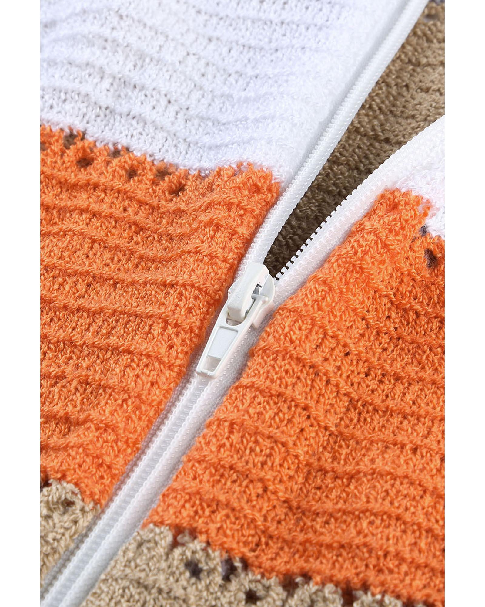 • Stylish and trendy Zipped Front Colorblock Hollow