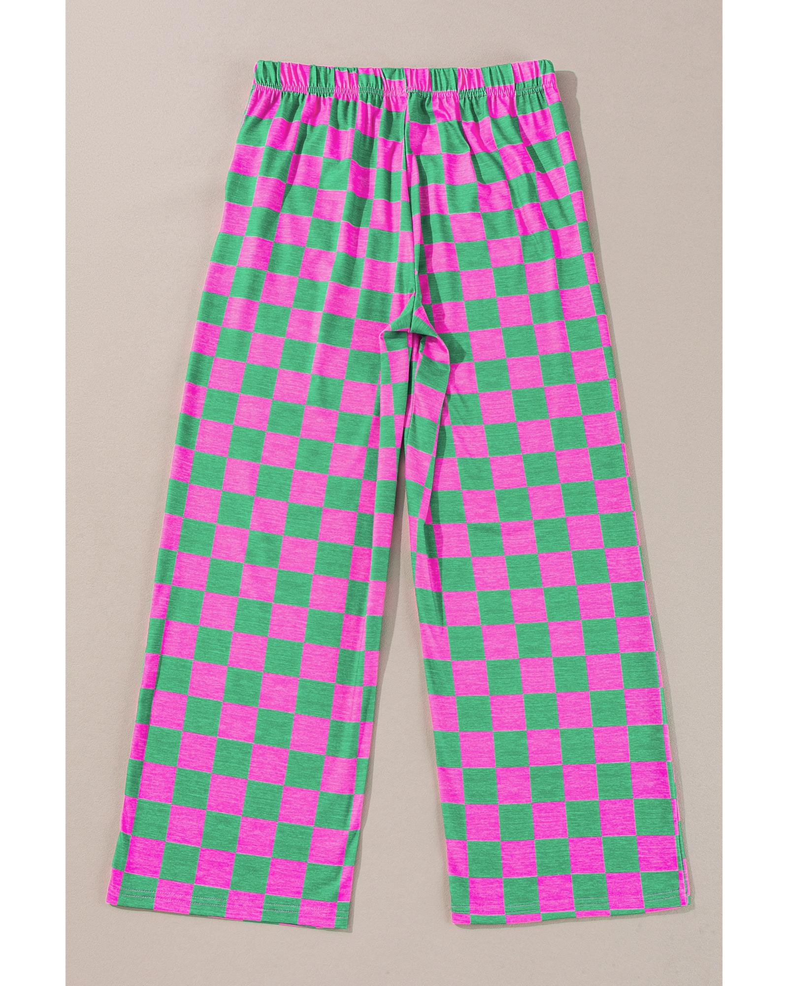 Green 2-Tone Checked Print High Waist Wide Leg Pants – M