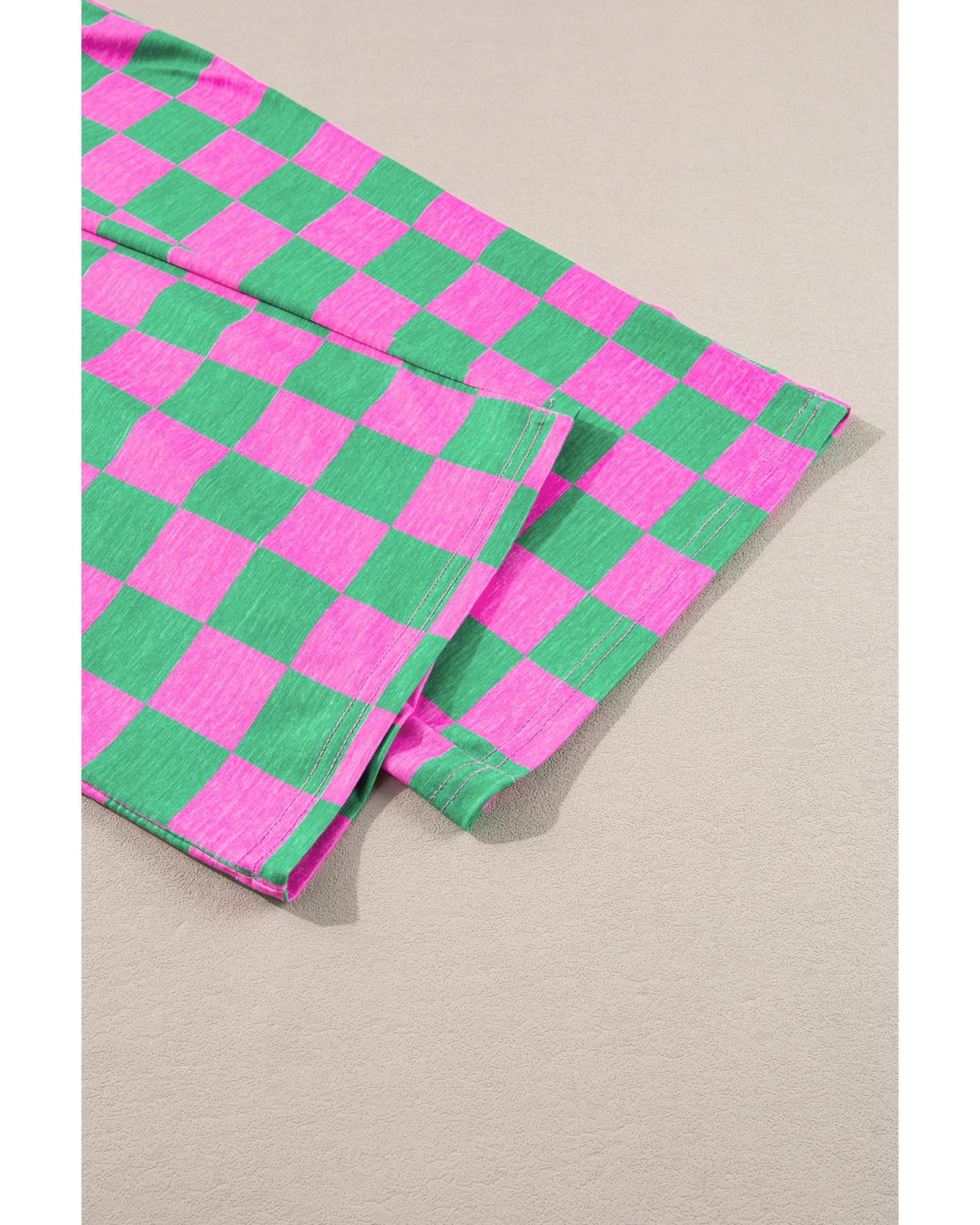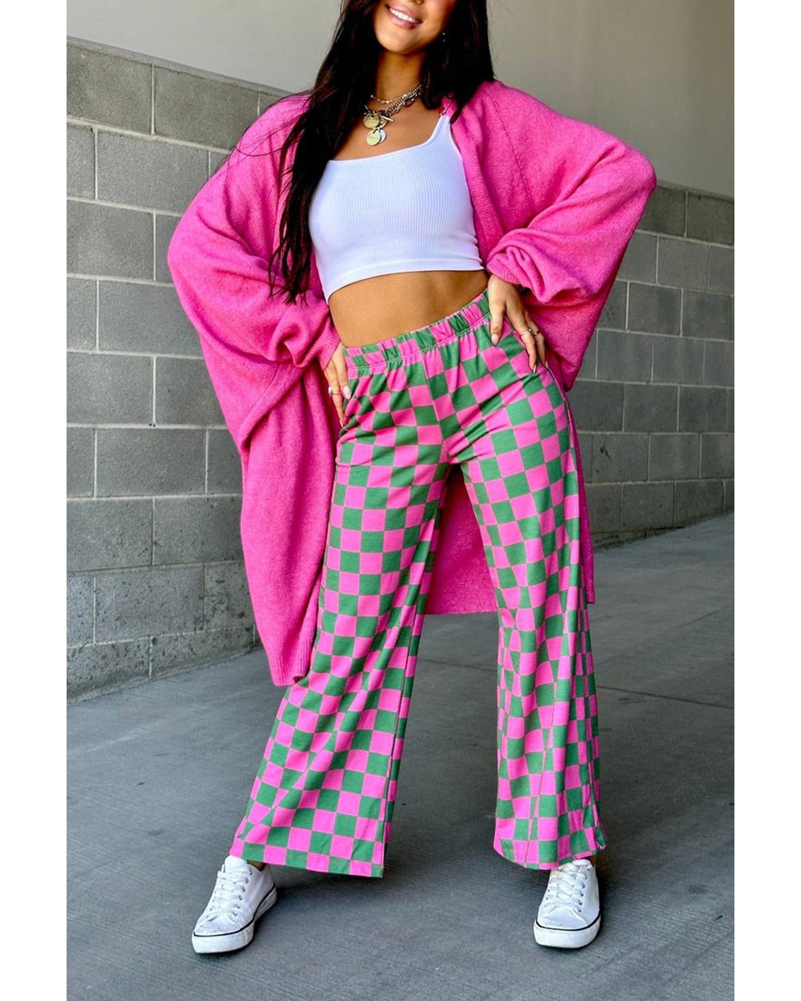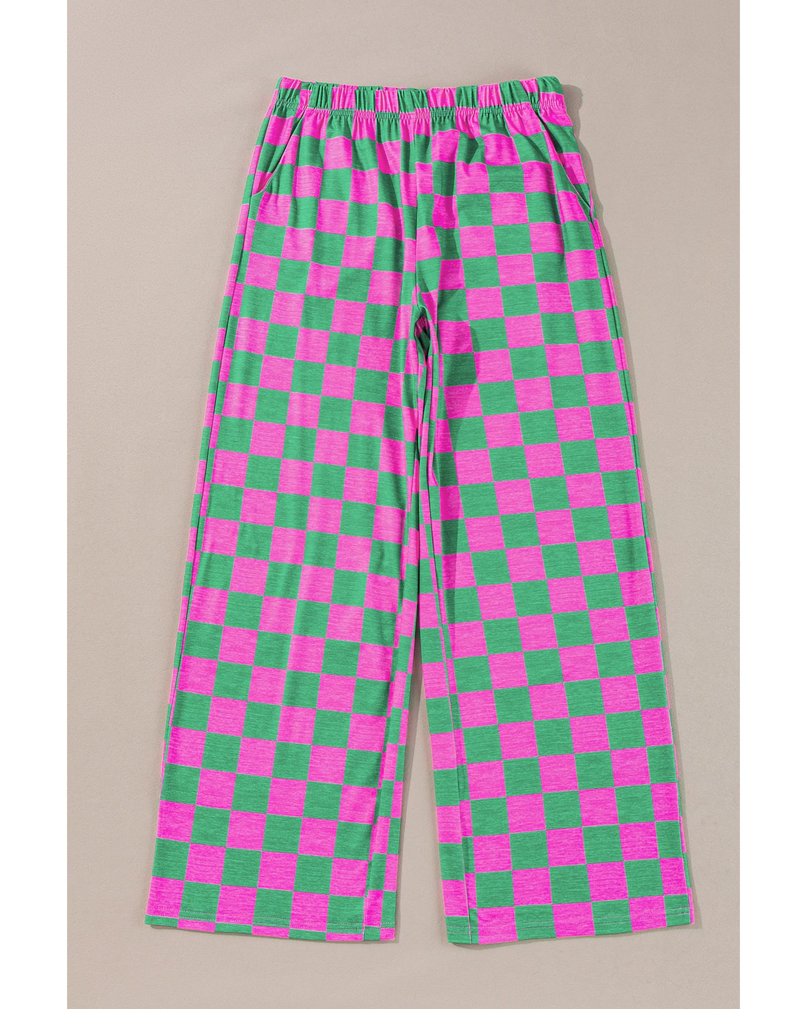 Green 2-Tone Checked Print High Waist Wide Leg Pants – S