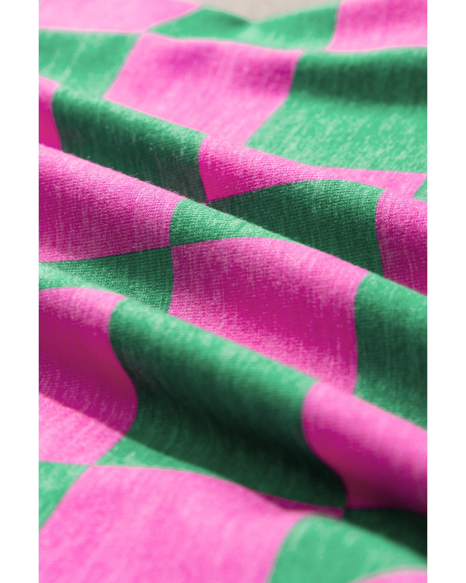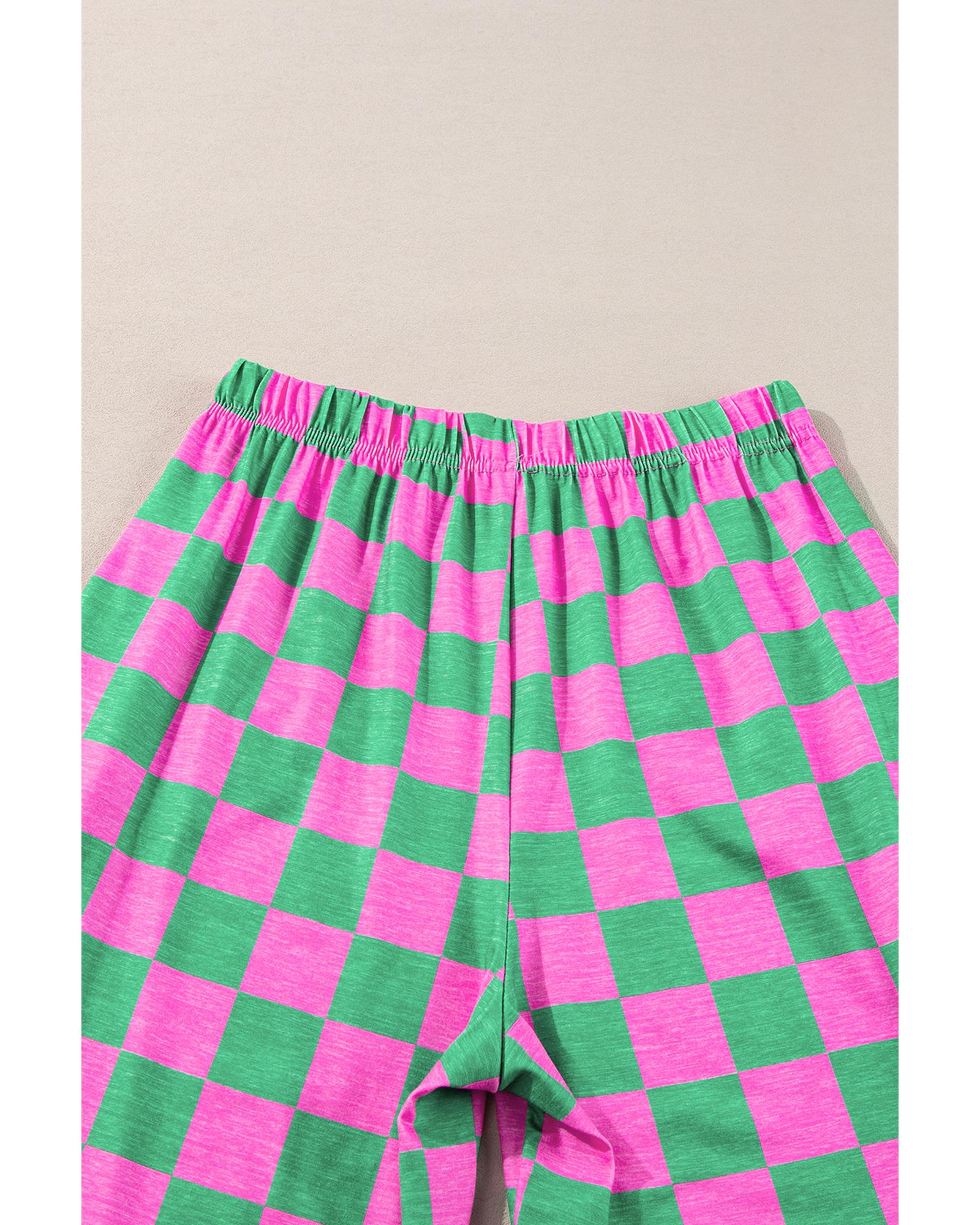 Green 2-Tone Checked Print High Waist Wide Leg Pants – XL