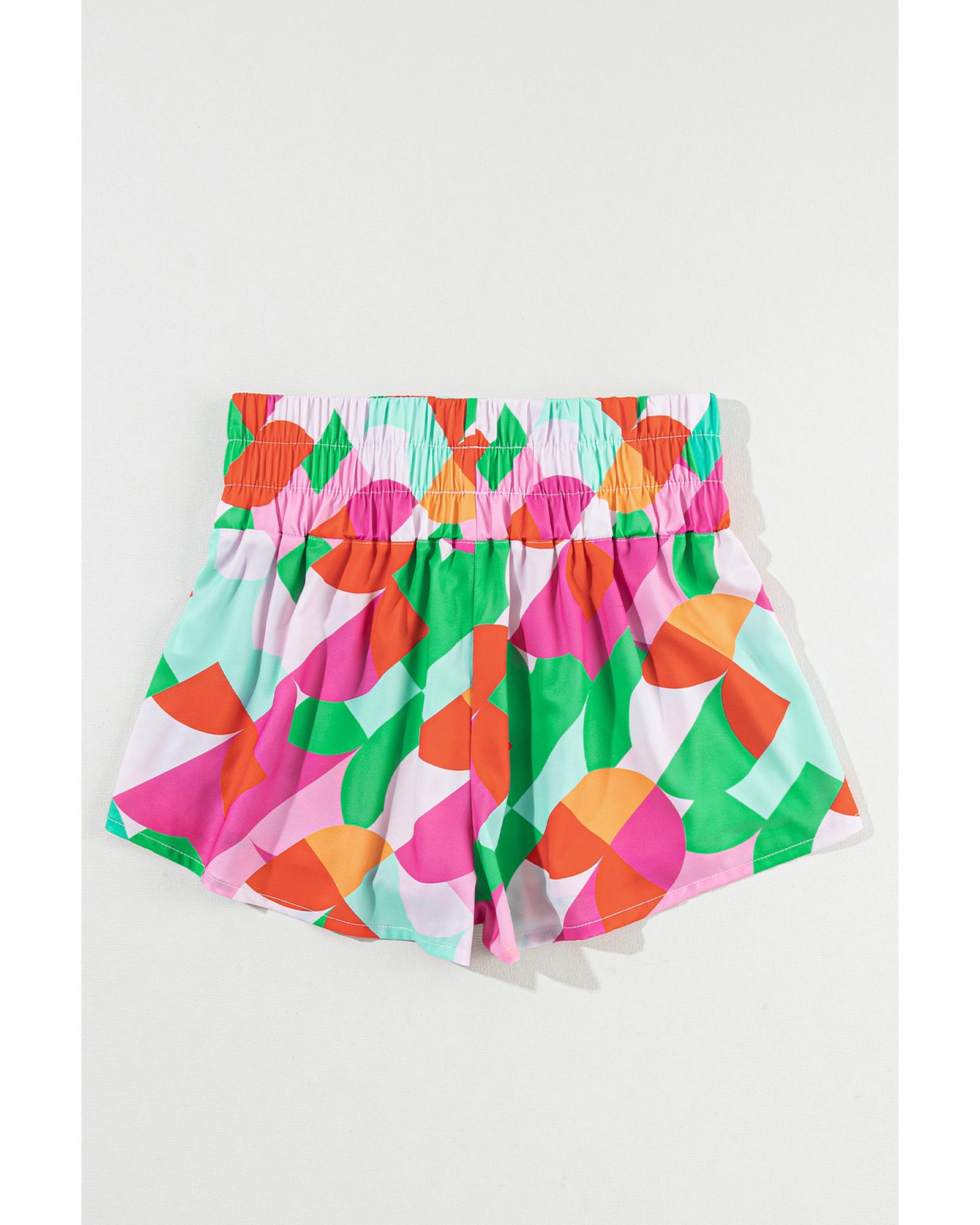 Green Abstract Print Smock Waist Casual Shorts – XL