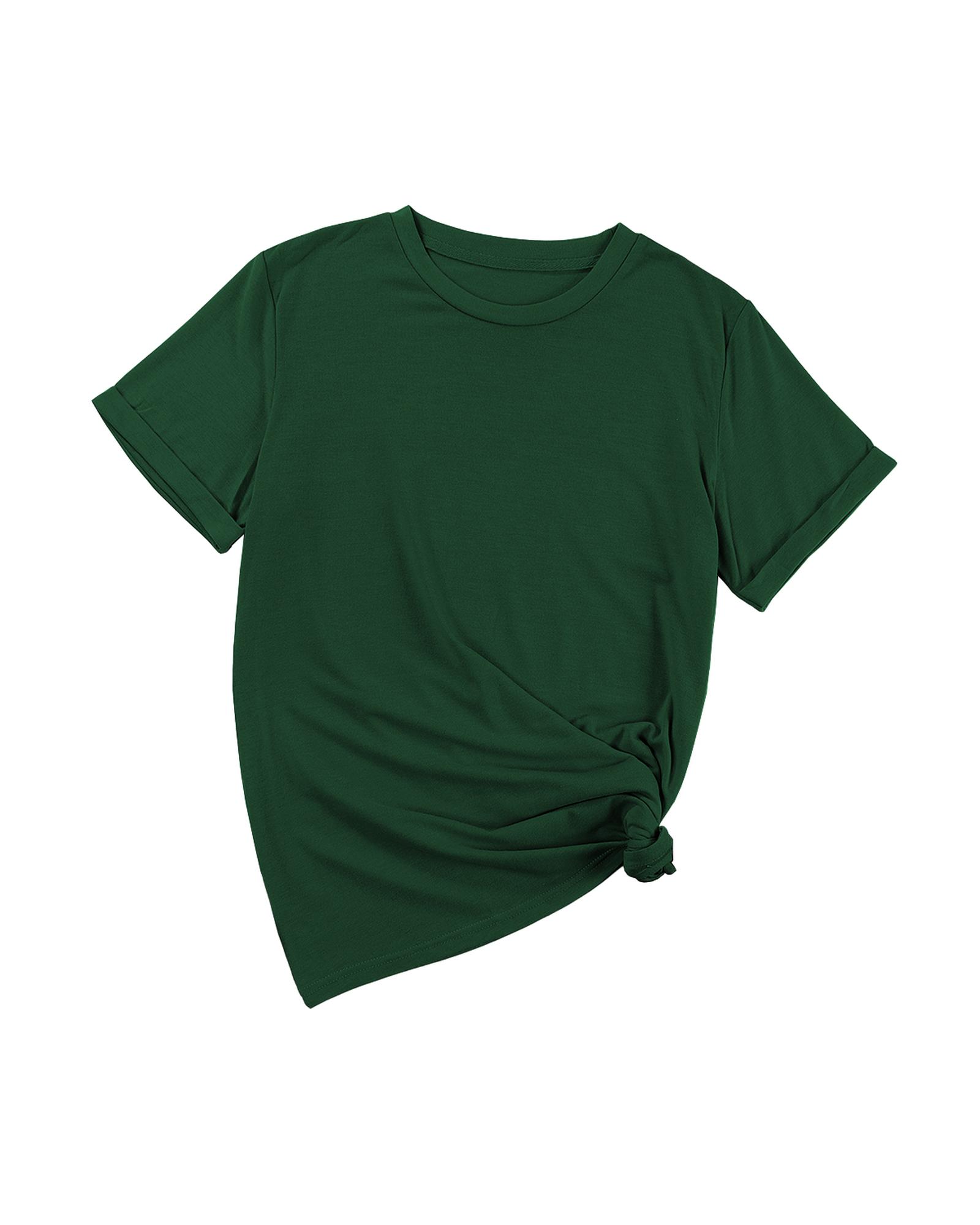 Green Casual Plain Crew Neck Tee – XL