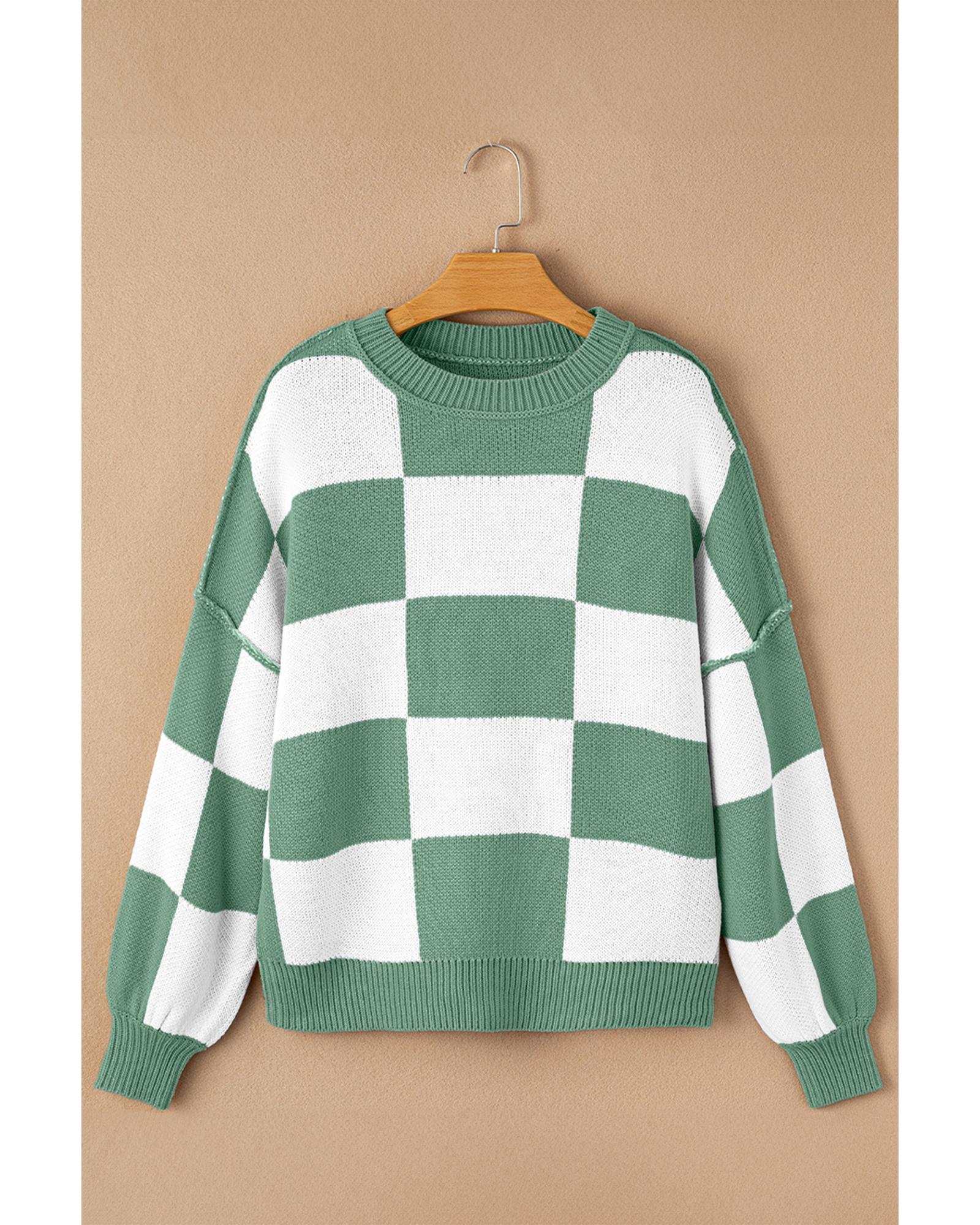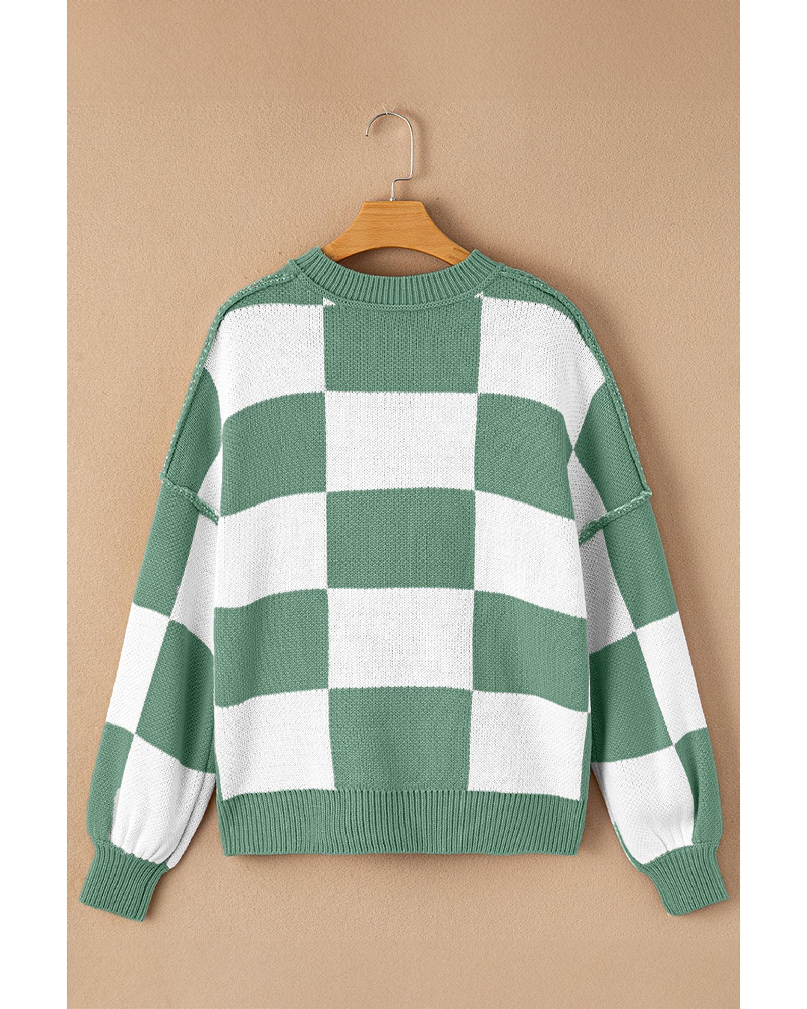 - Stylish Green Checkered Bishop Sleeve Sweater