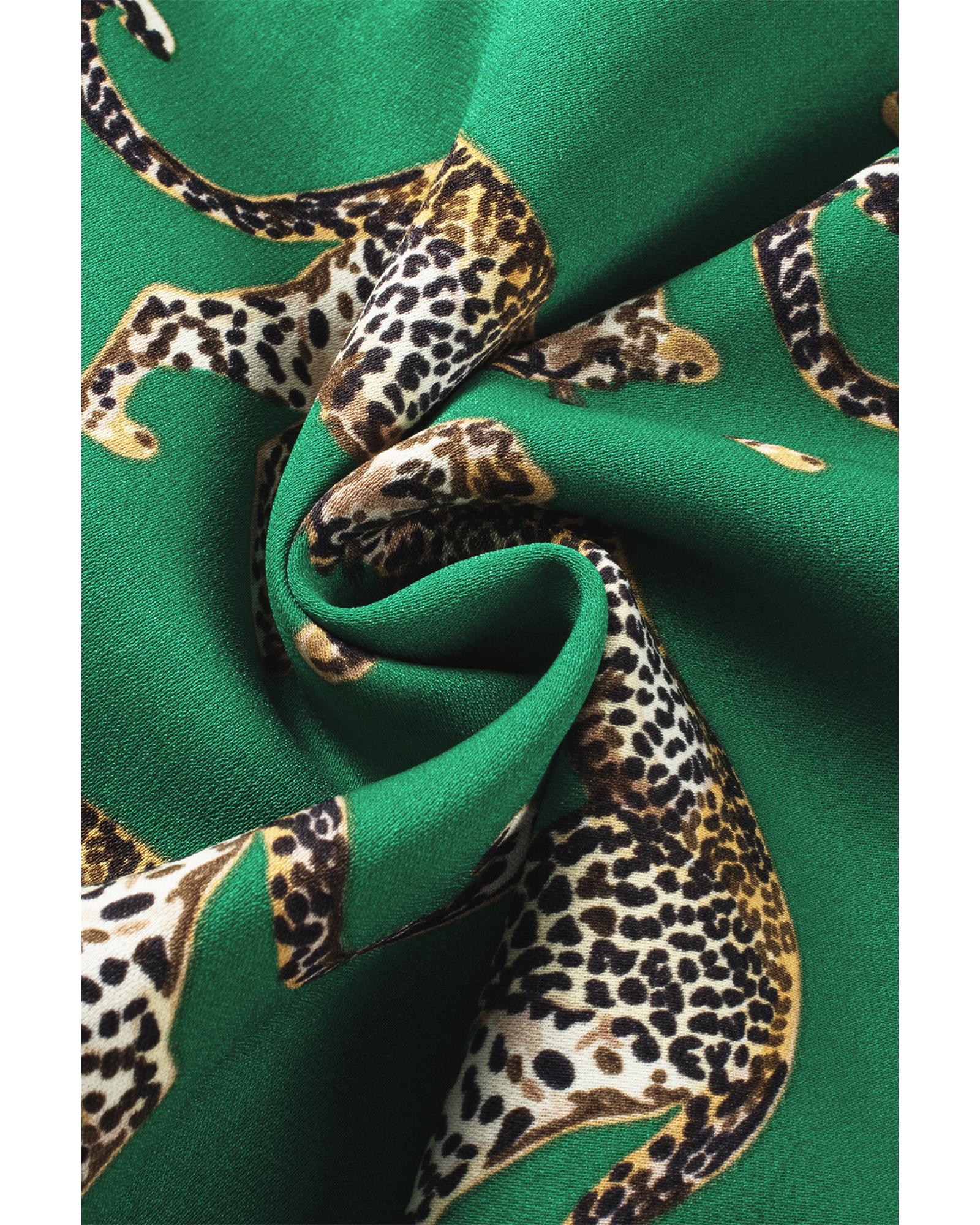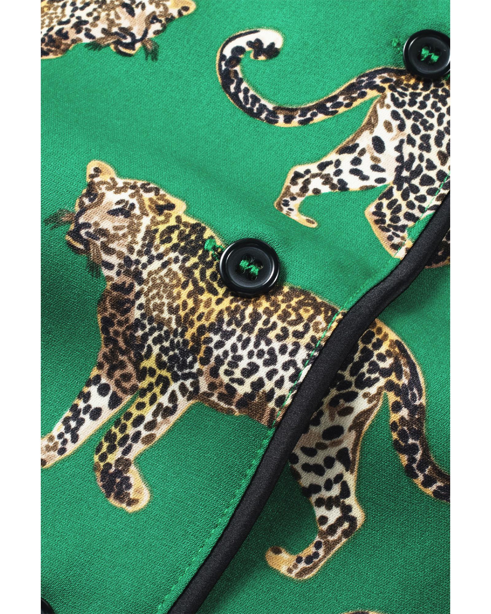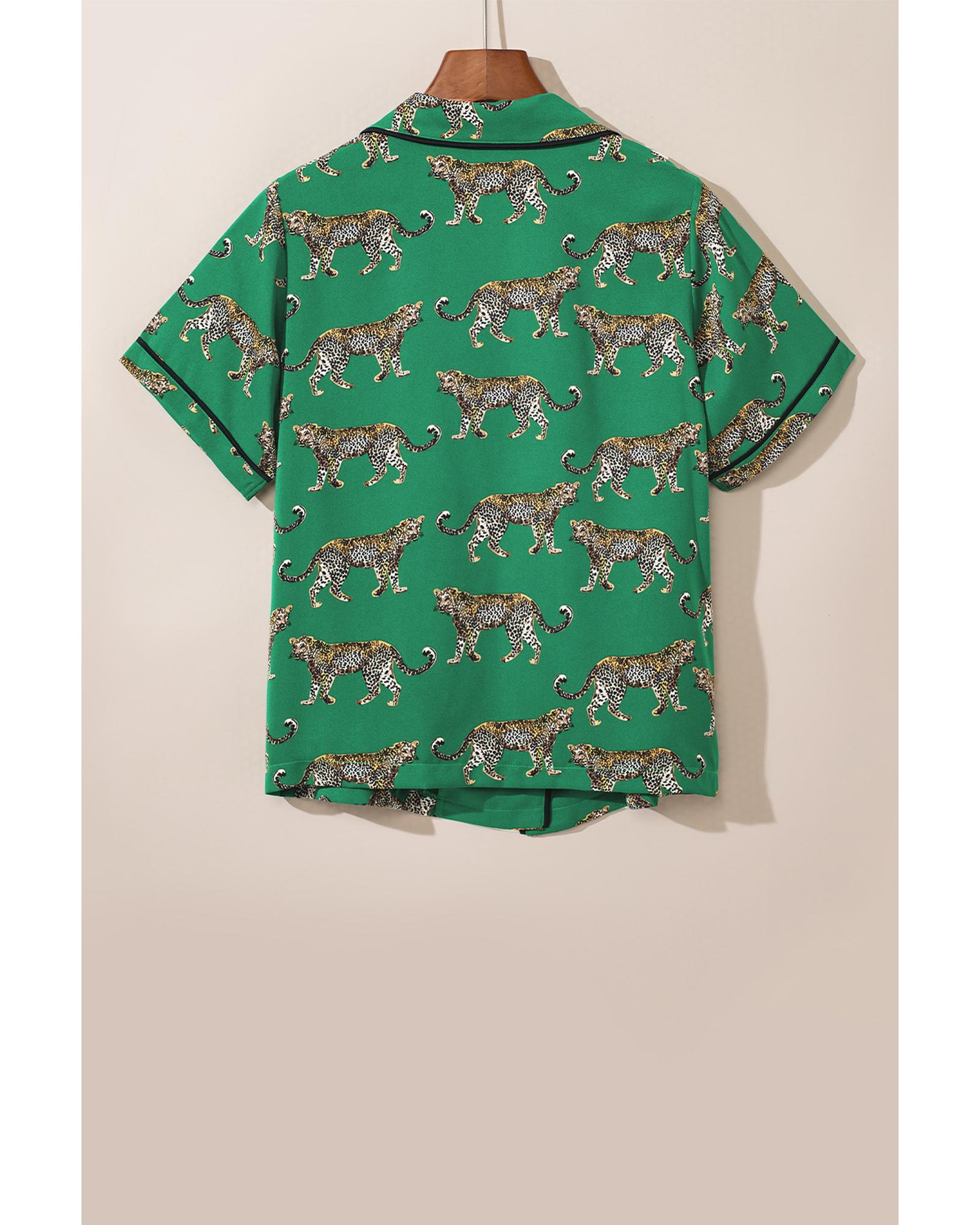 Green Cheetah Print Short Sleeve Shirt and Pants Pajama Set – M