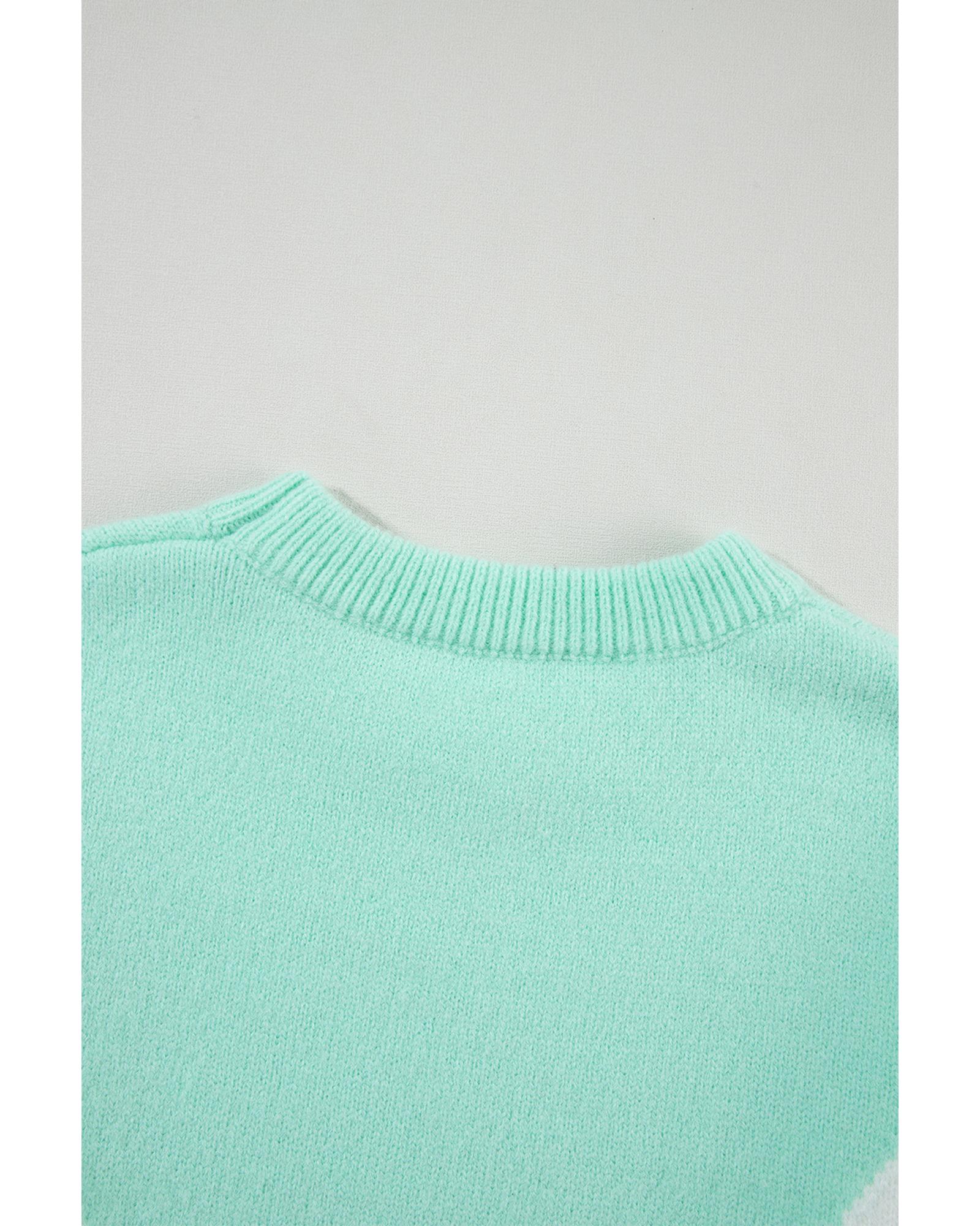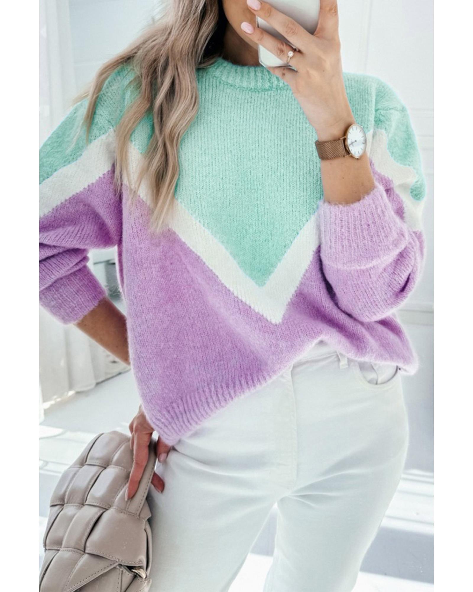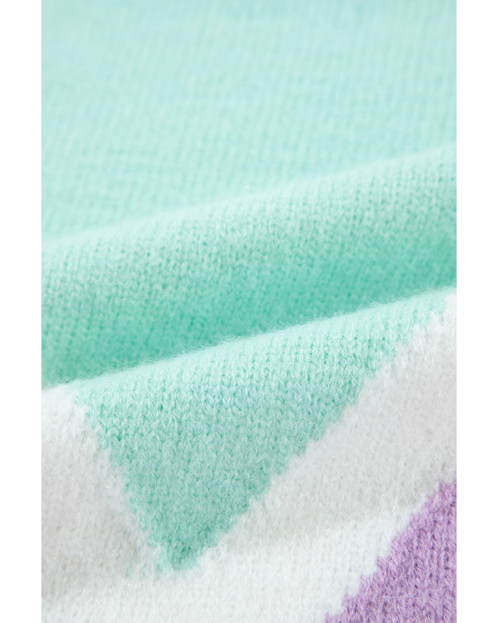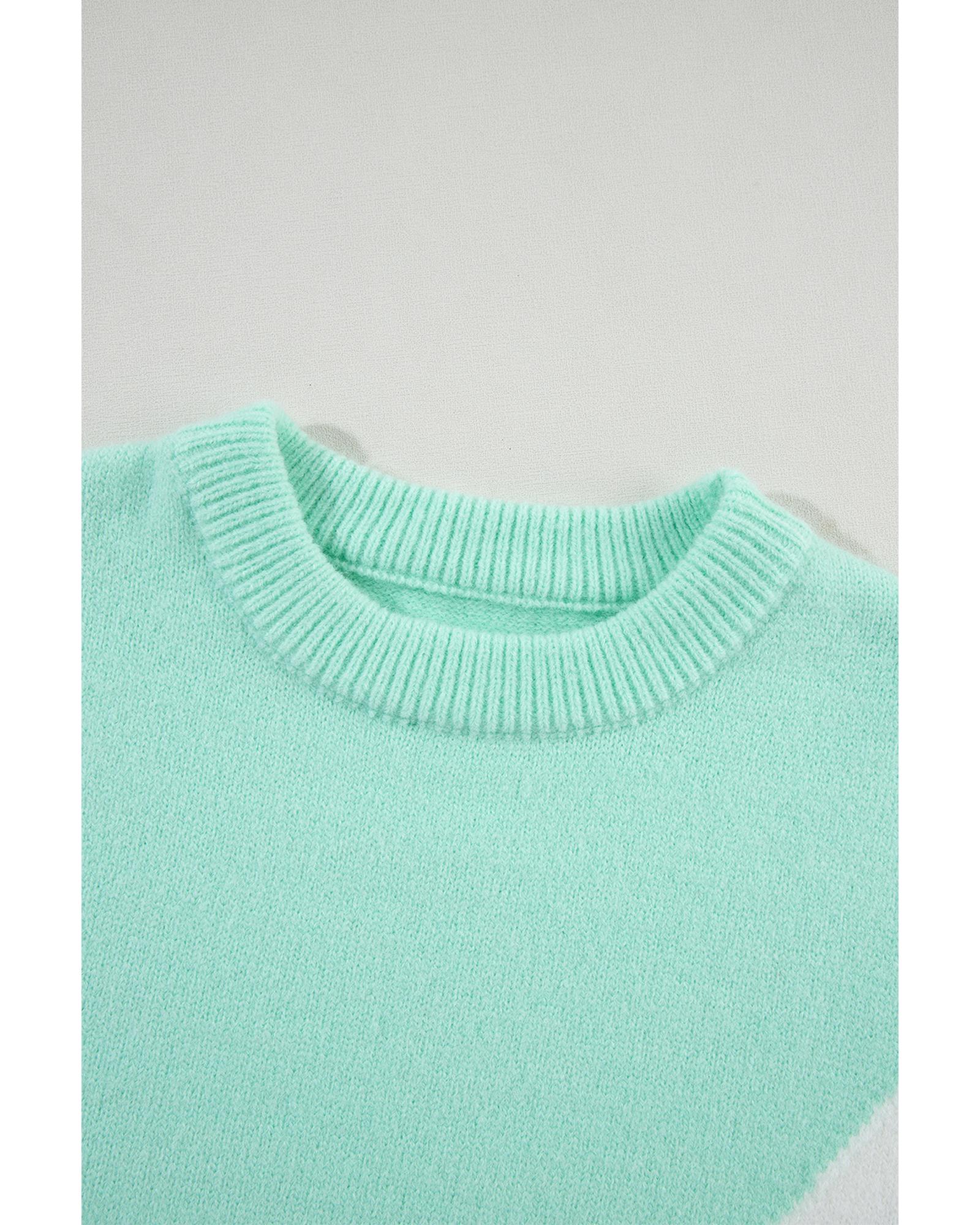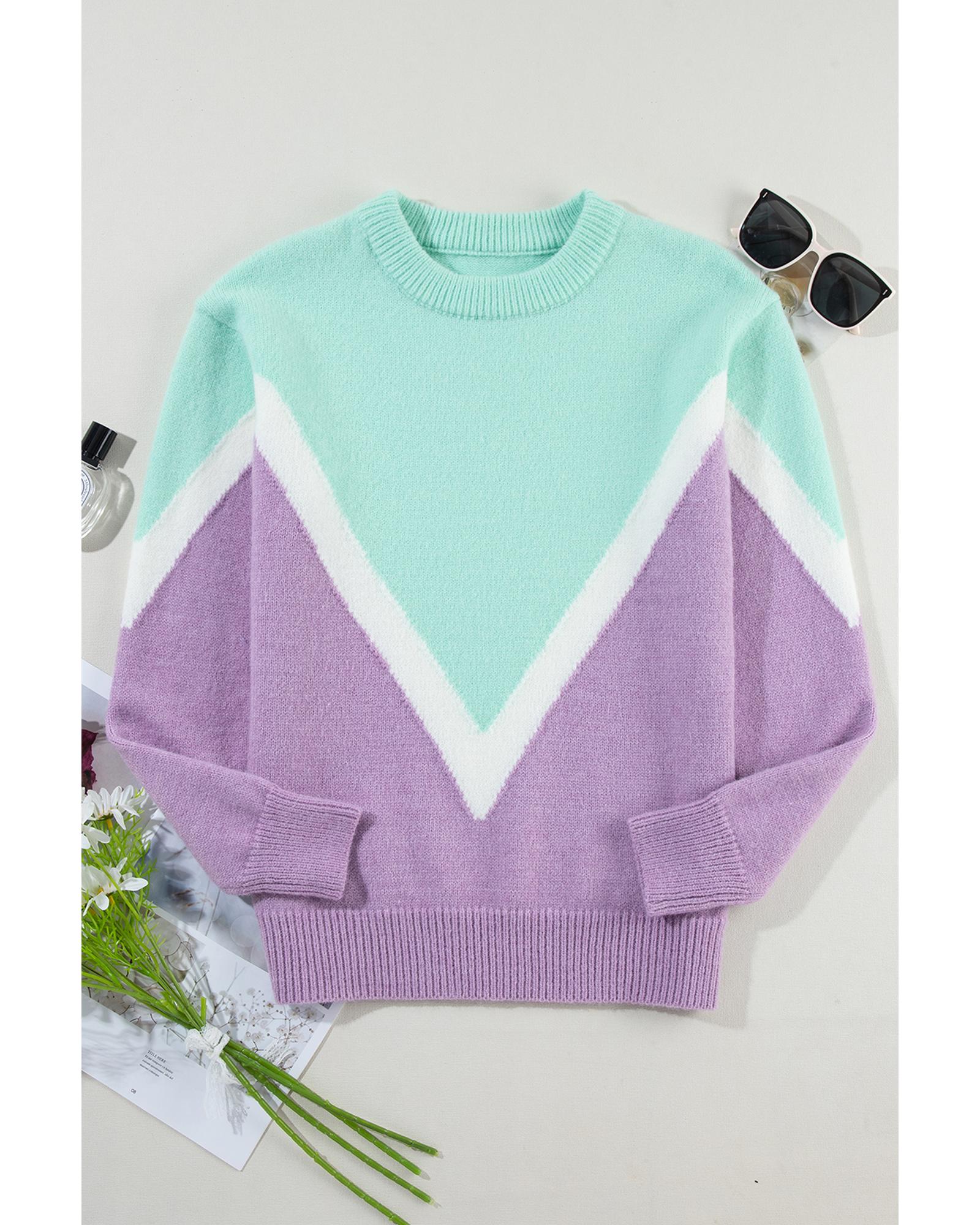 Green Chevron Colorblock Ribbed Knit Drop Shoulder Sweater – XL
