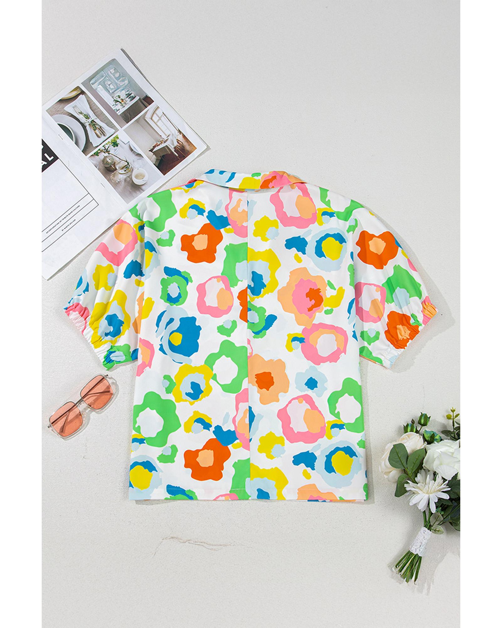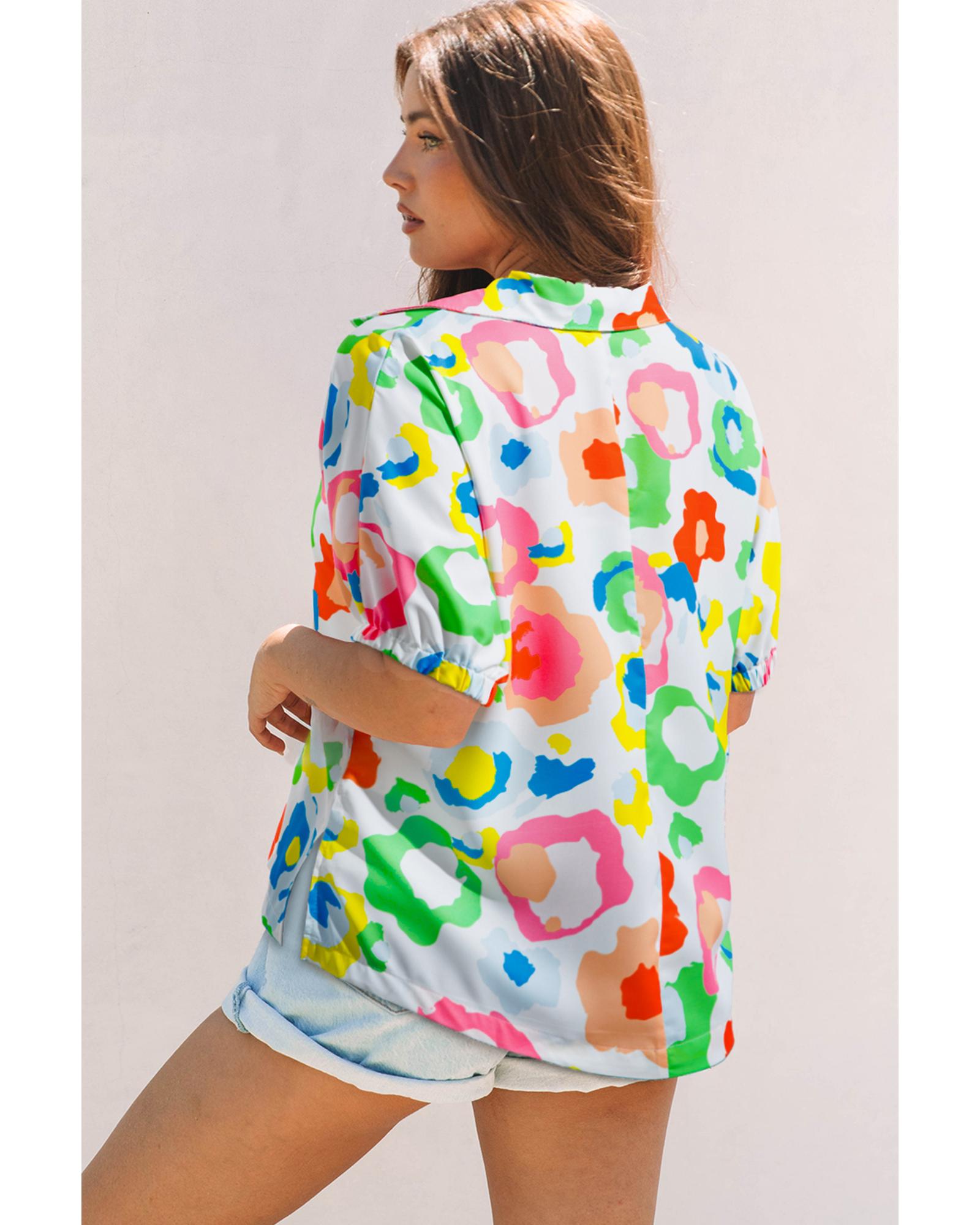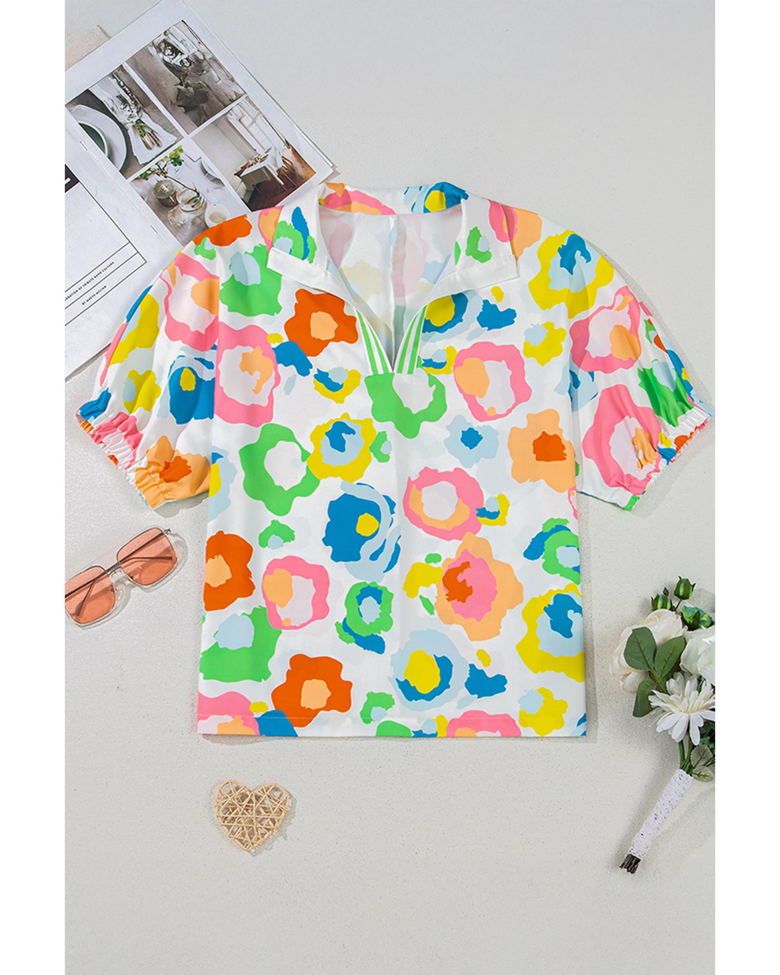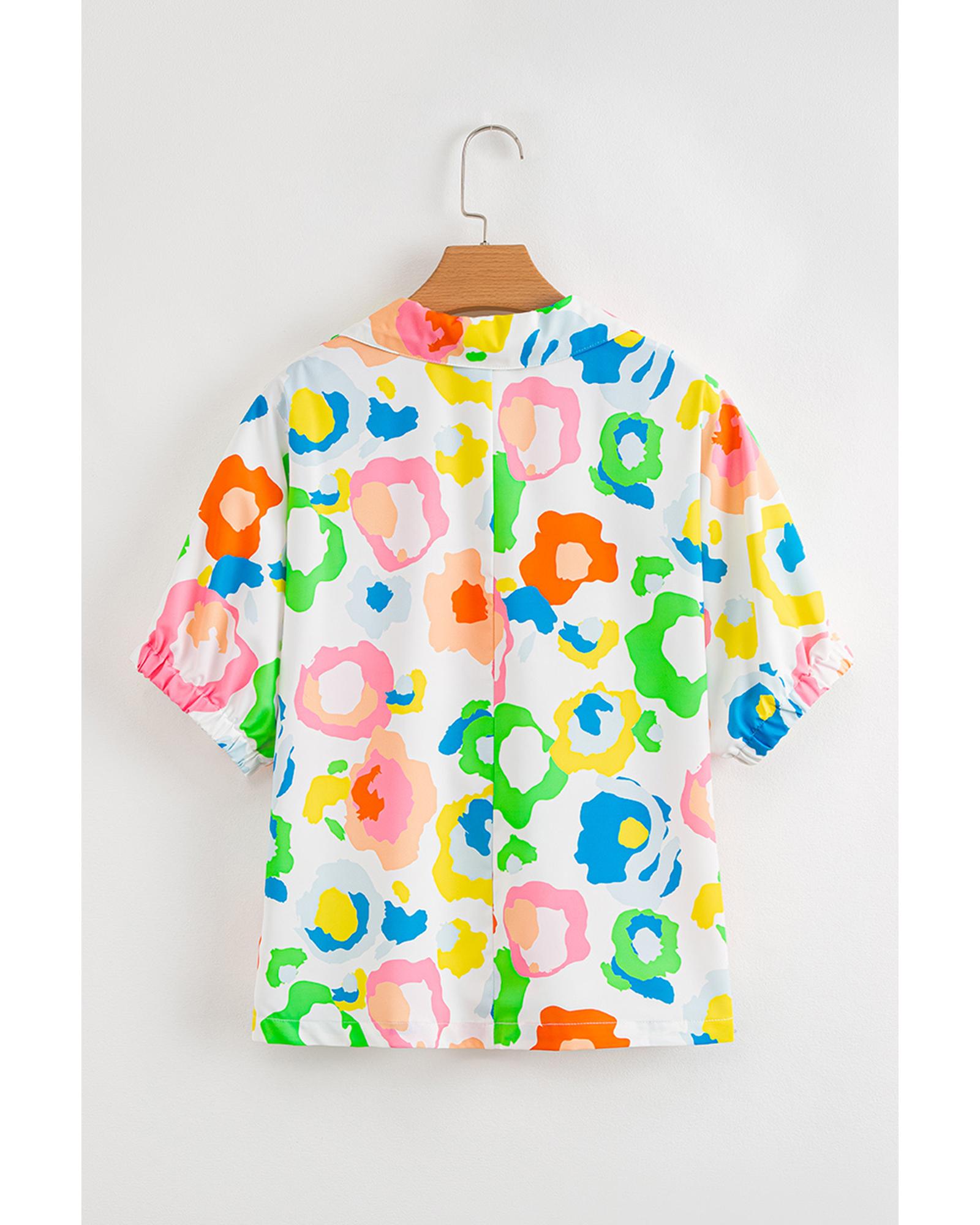 Green Chic Leopard Print Striped Detail Split Neck Blouse – L