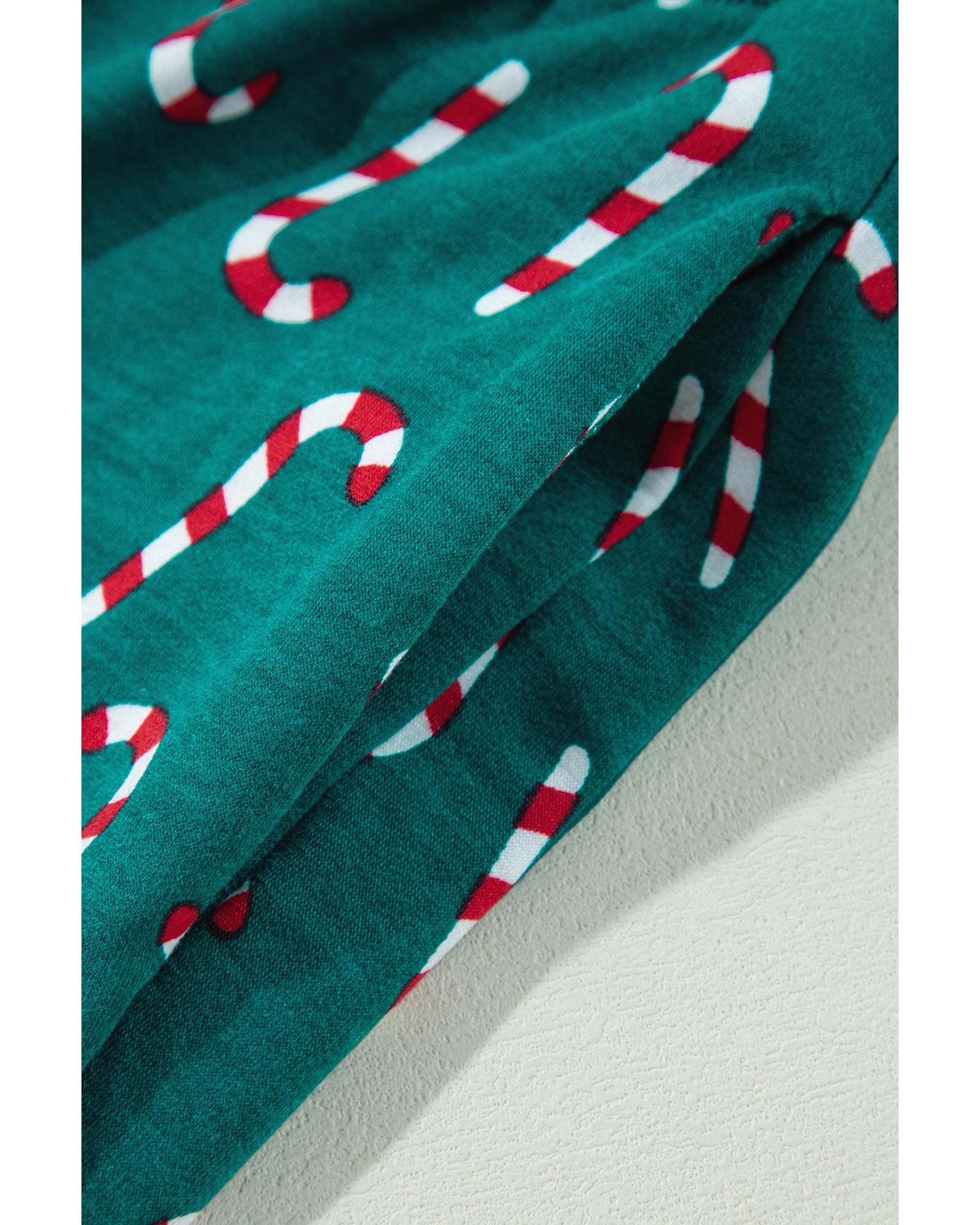 Green Christmas Candy Cane Printed Top and Pants Lounge Set – L