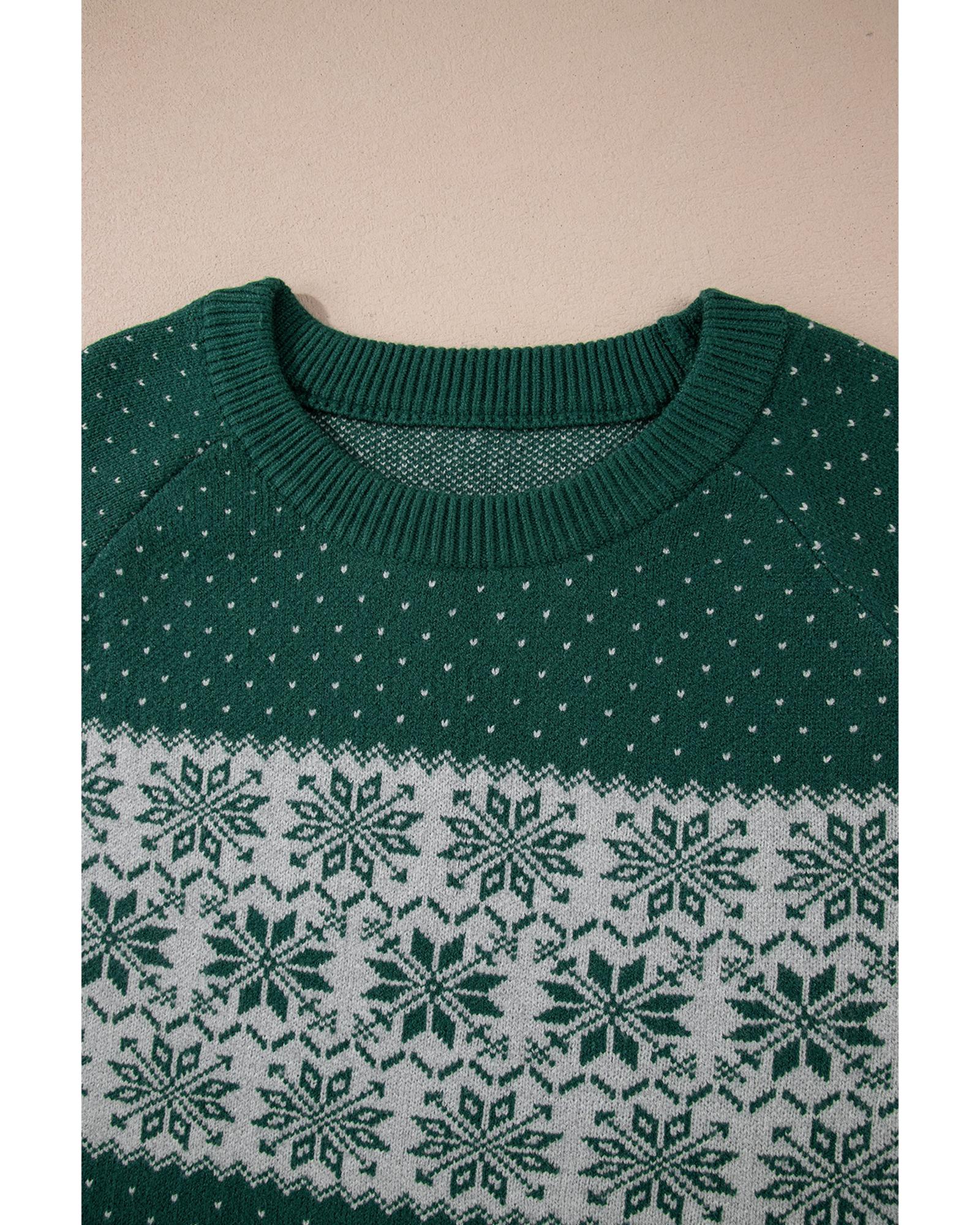 Green Christmas Snowflake Pattern Drop Shoulder Plus Size Sweater – 2X
