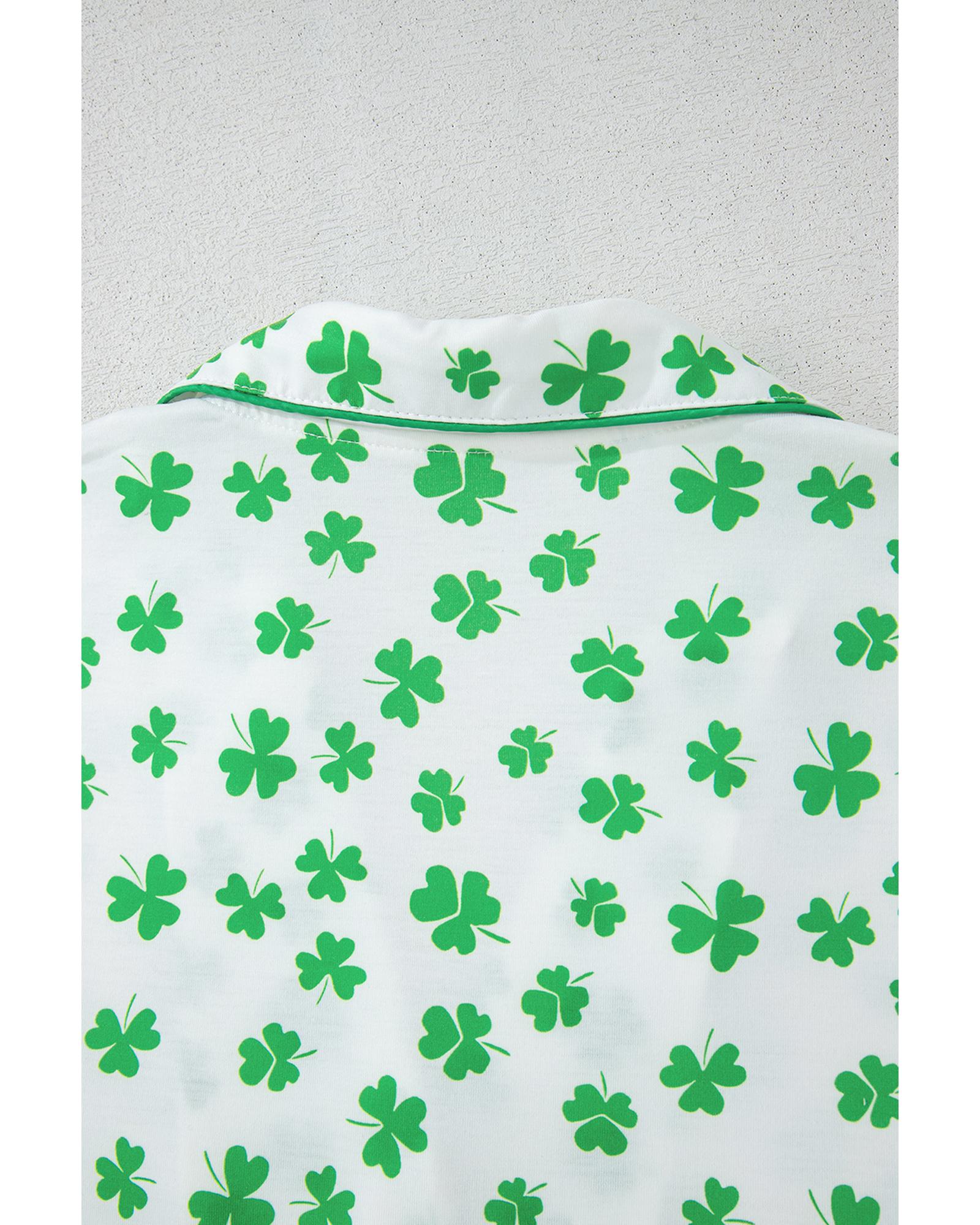 Green Clover Printed Short Sleeve and Ruffled Shorts Pajama Set - M