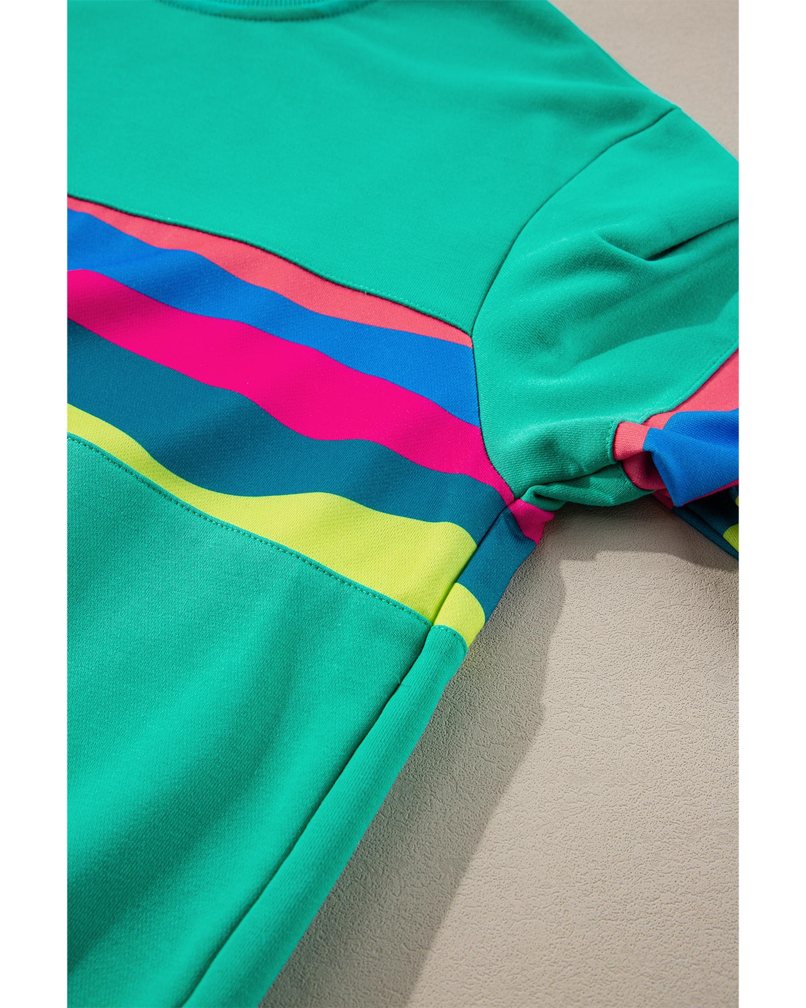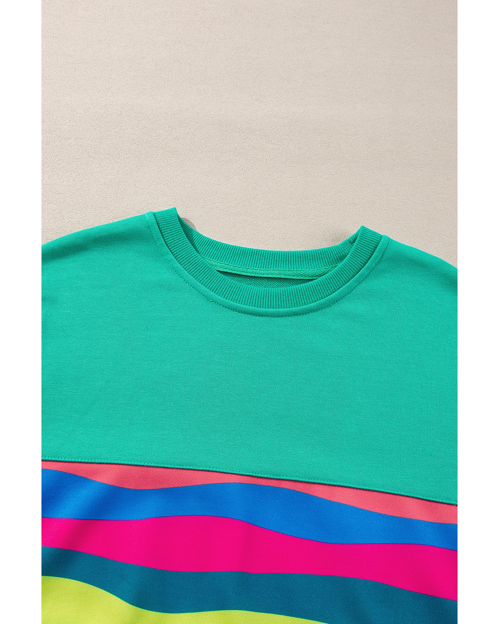 Green Colorful Striped Accent Long Sleeve T Shirt – S