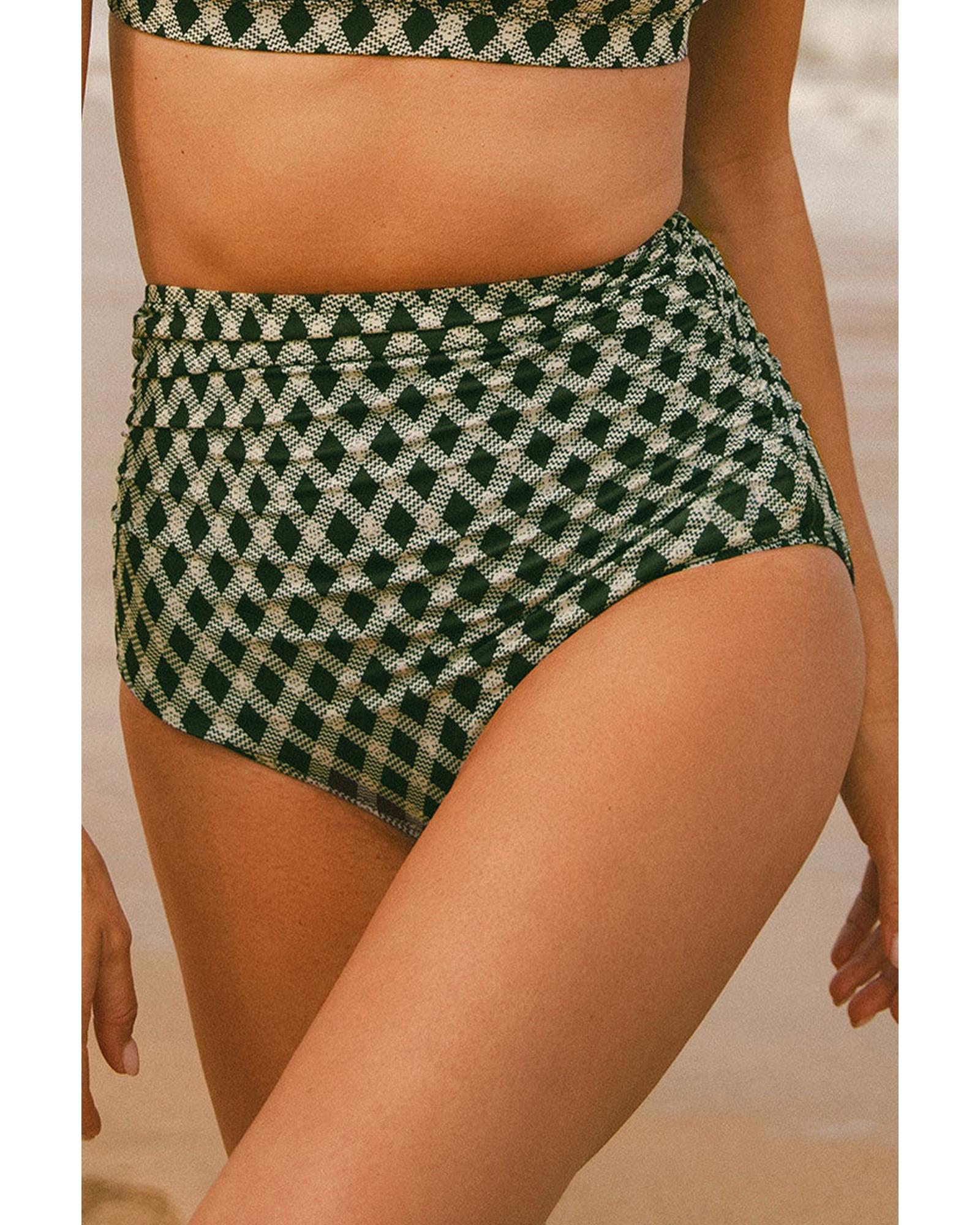Green Dotted Mesh Plaid Patchwork High Waisted Bikini – 2XL