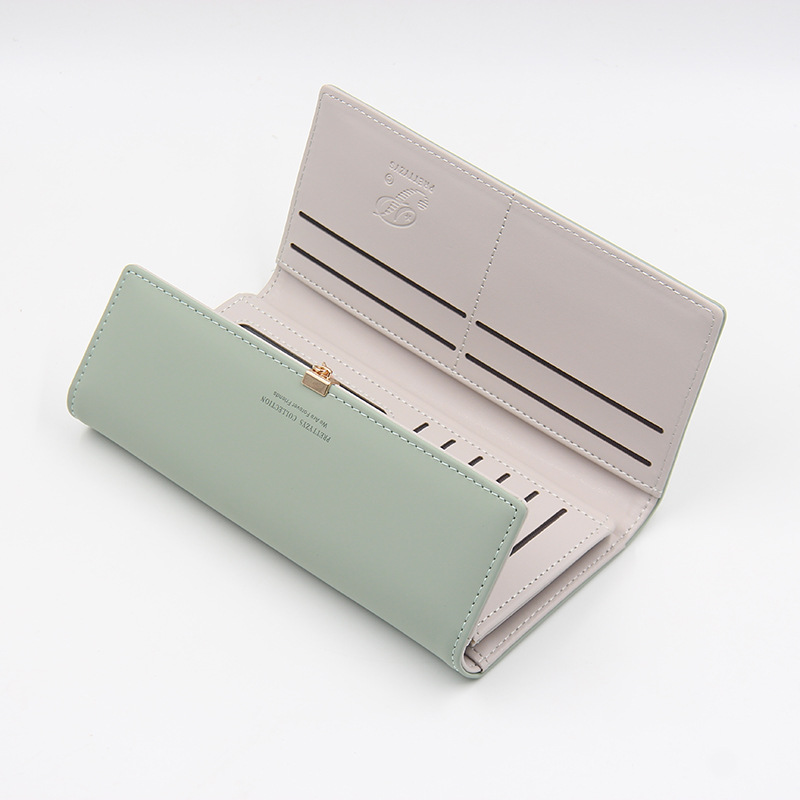 Green Elegant Ladies Long PU Leather Wallet – Slim Clutch with Leaf Charm, Multi-Card Holder & Organizer