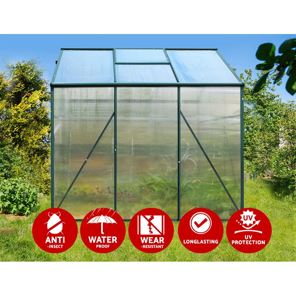 Green Fingers Greenhouse 1.9×1.9×1.83M Aluminium Polycarbonate Green House Garden Shed