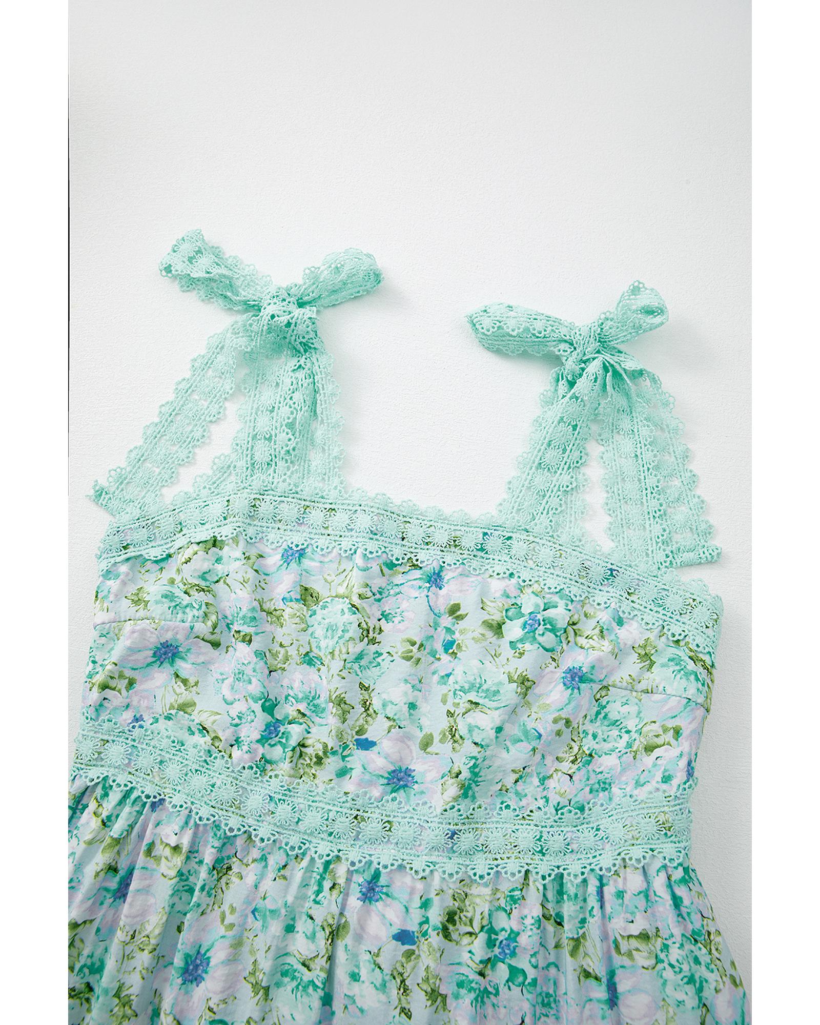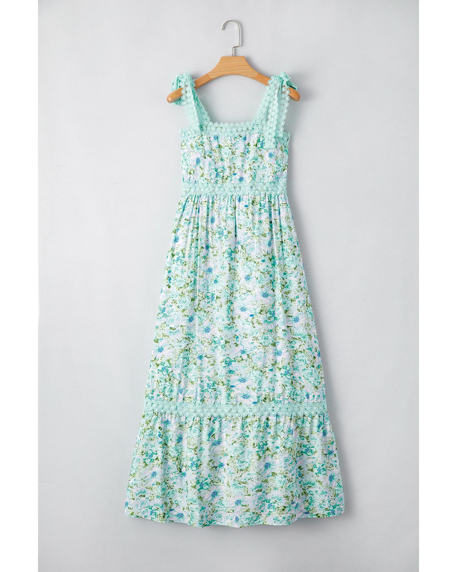 Green Floral Lace Tied Strap Empire Waist Maxi Dress – L