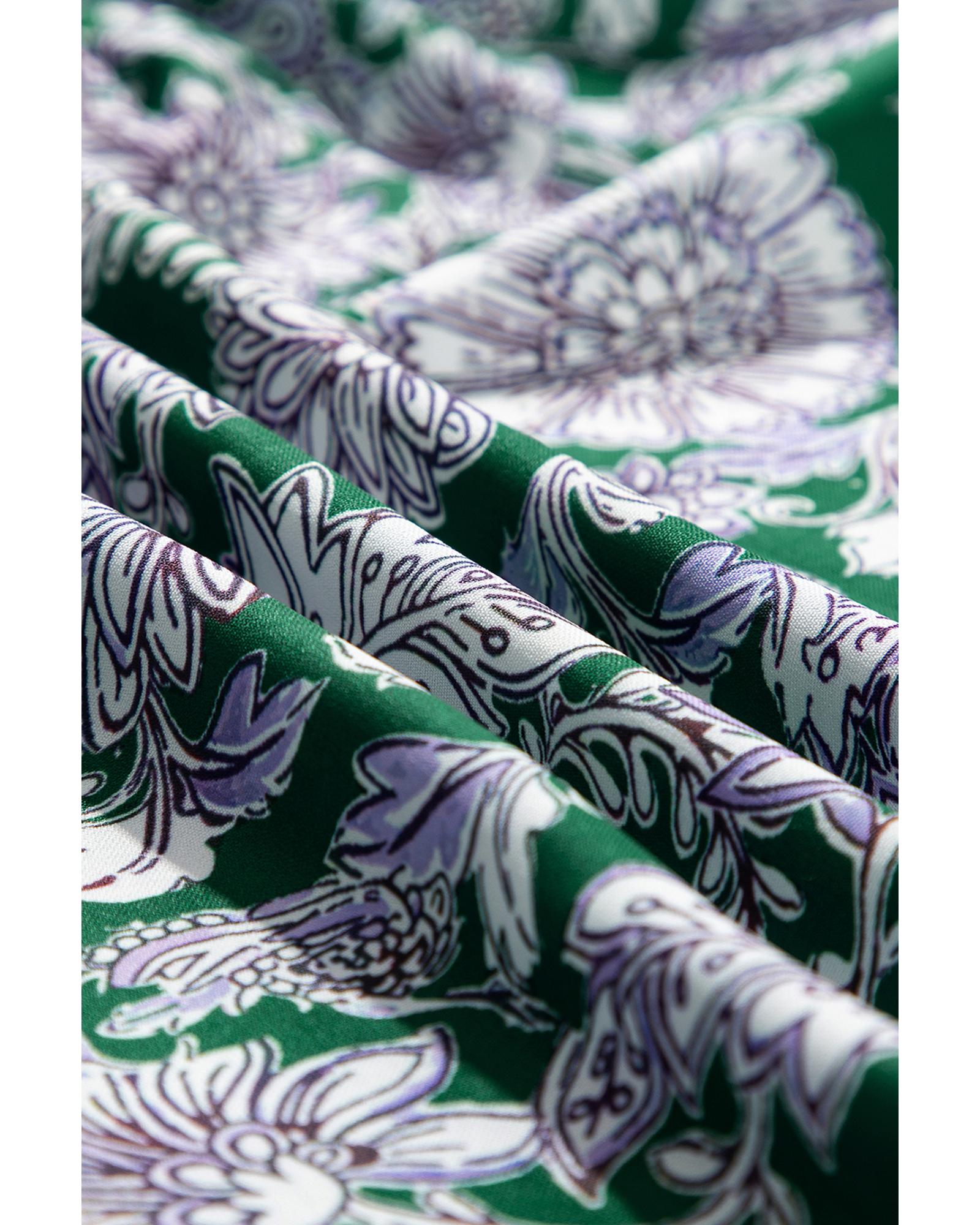 Green Floral Print Piping Trim Bubble Sleeve Square Neck Dress – M