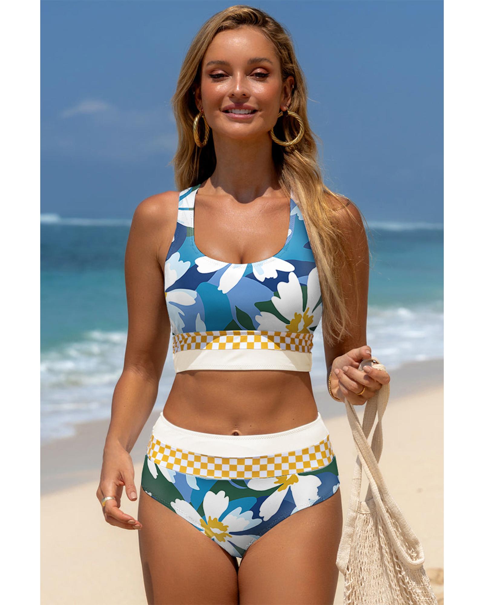 Green Floral Print Racerback Cutout High Waist 2pcs Bikini – S