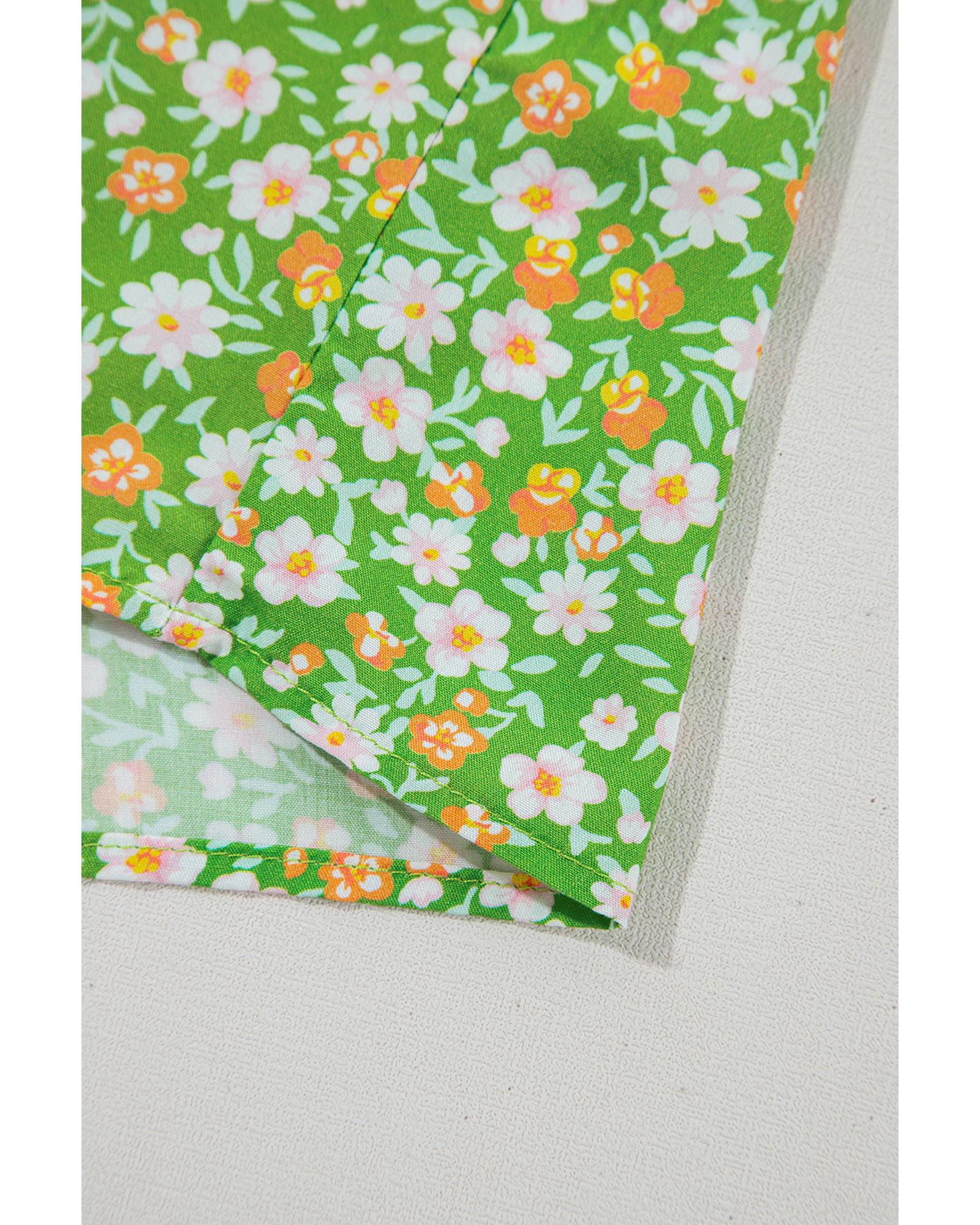 Green Floral Print Ruffle Sleeve V Neck Blouse Top – S