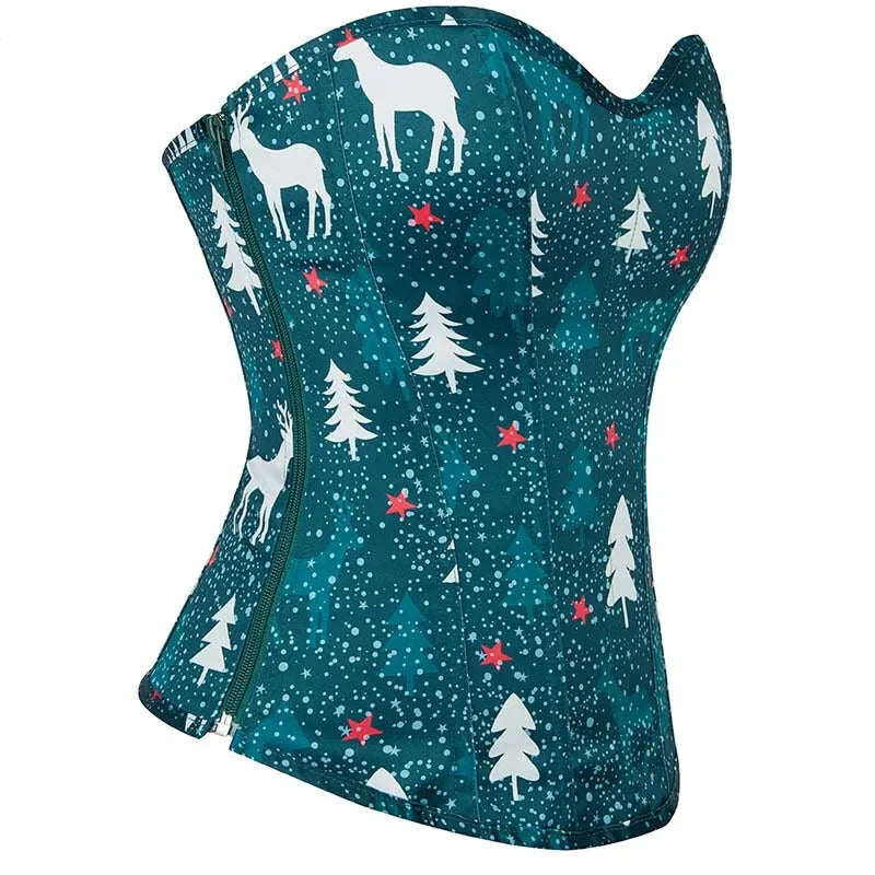 • 1 x Green Lace-Up Corset Top Fish Bone Support Plus Size Xs-Xl Zip Lace Closure