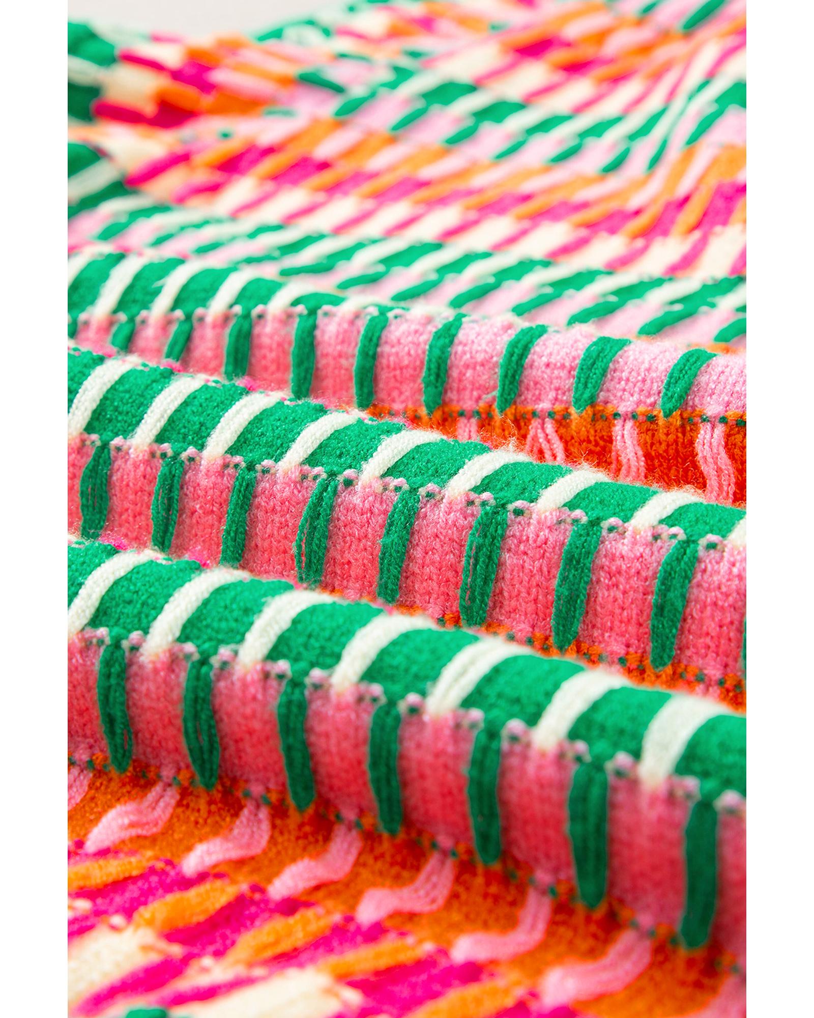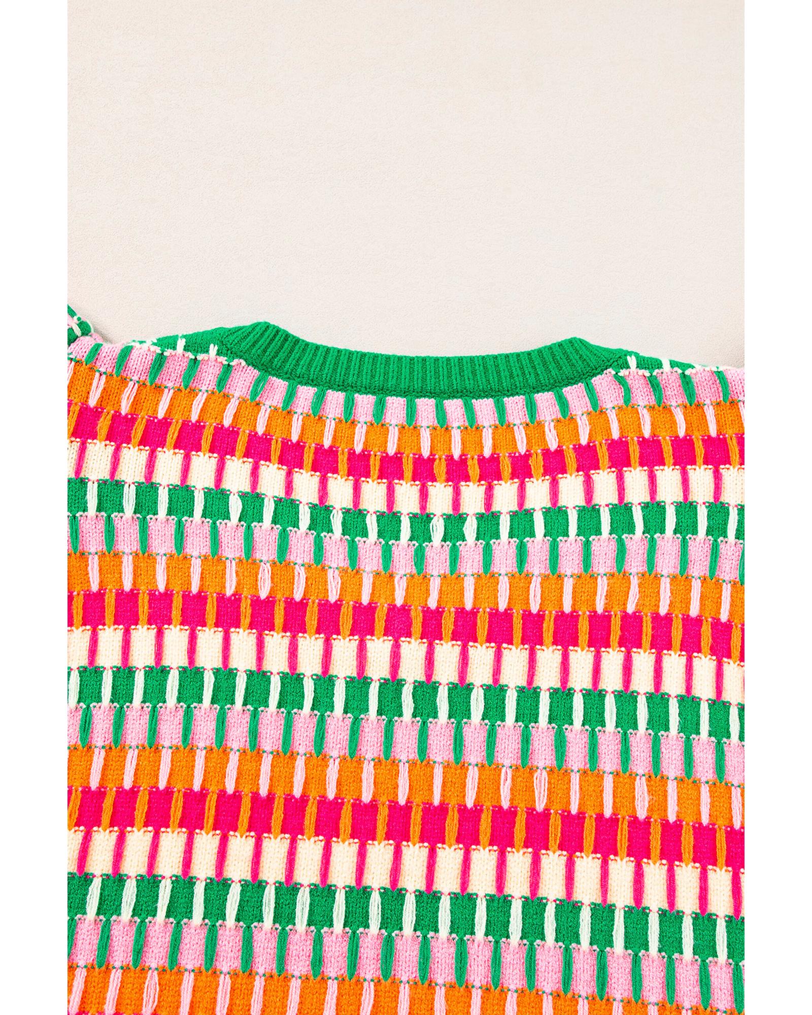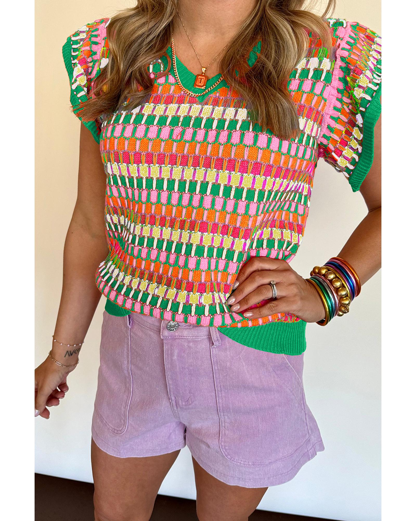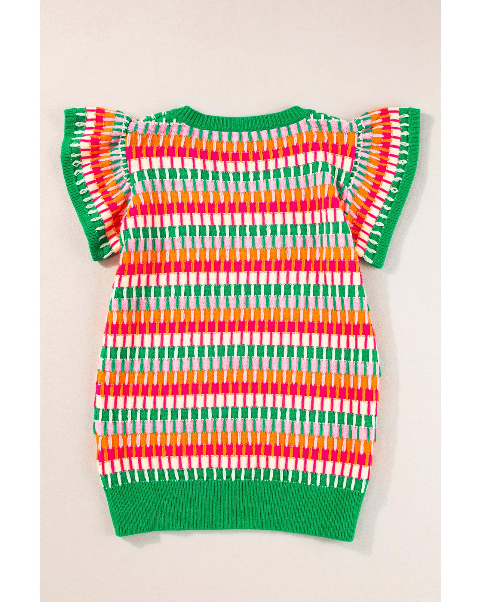 Green Multi Flutter Sleeve Knitted Sweater Top – M