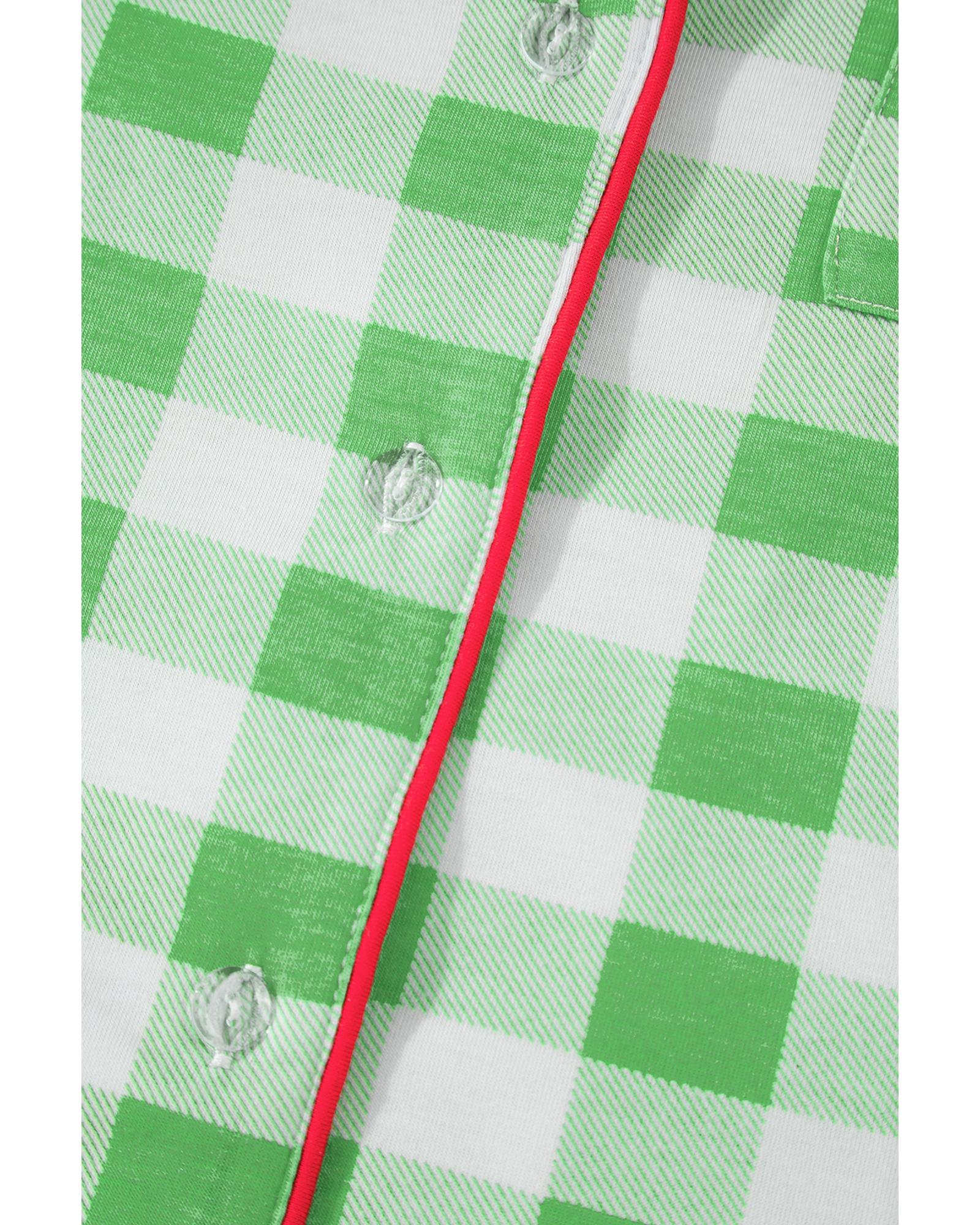 Green Plaid Print Contrast Trim Long Sleeve Plus Size Pajama Set – 1X