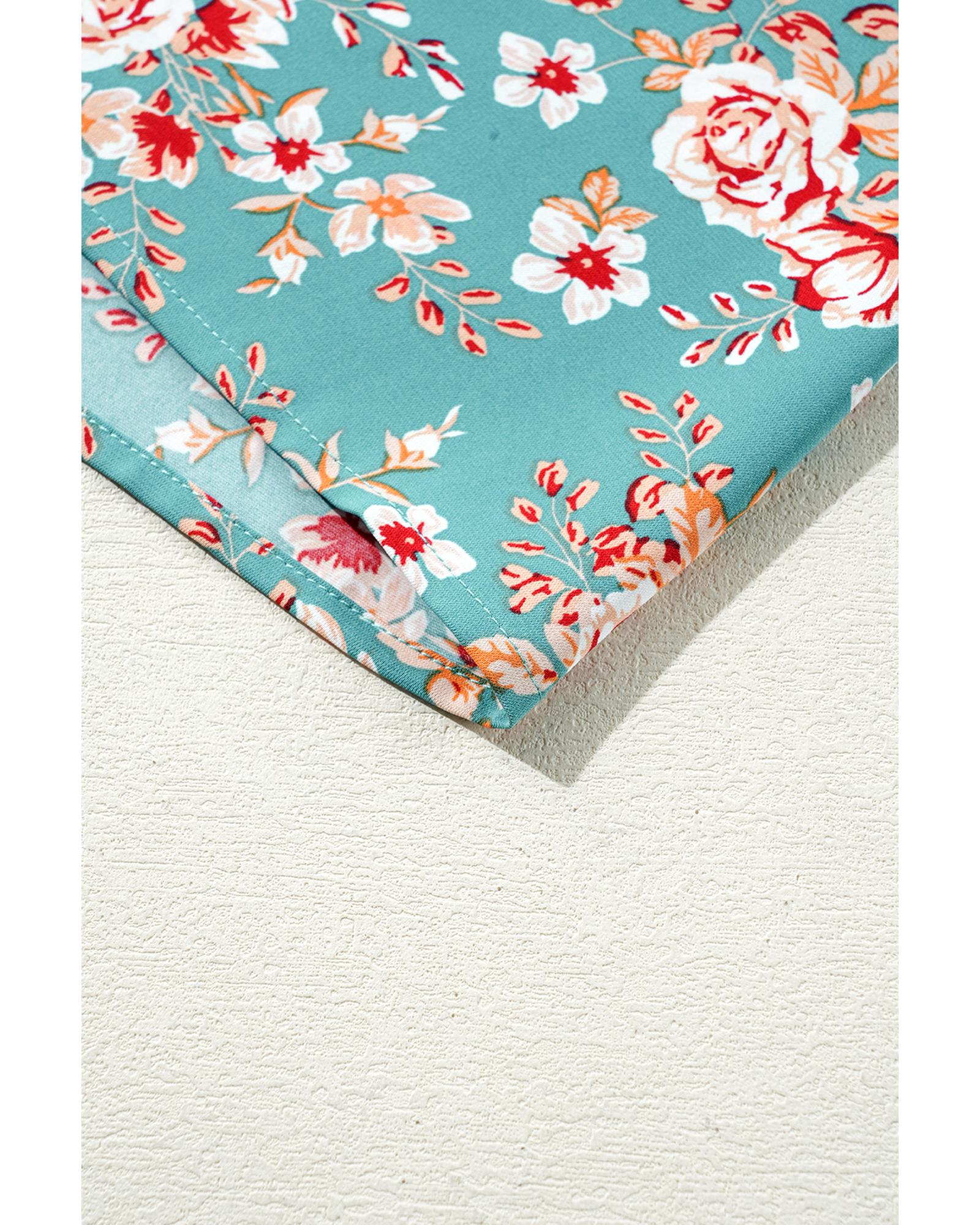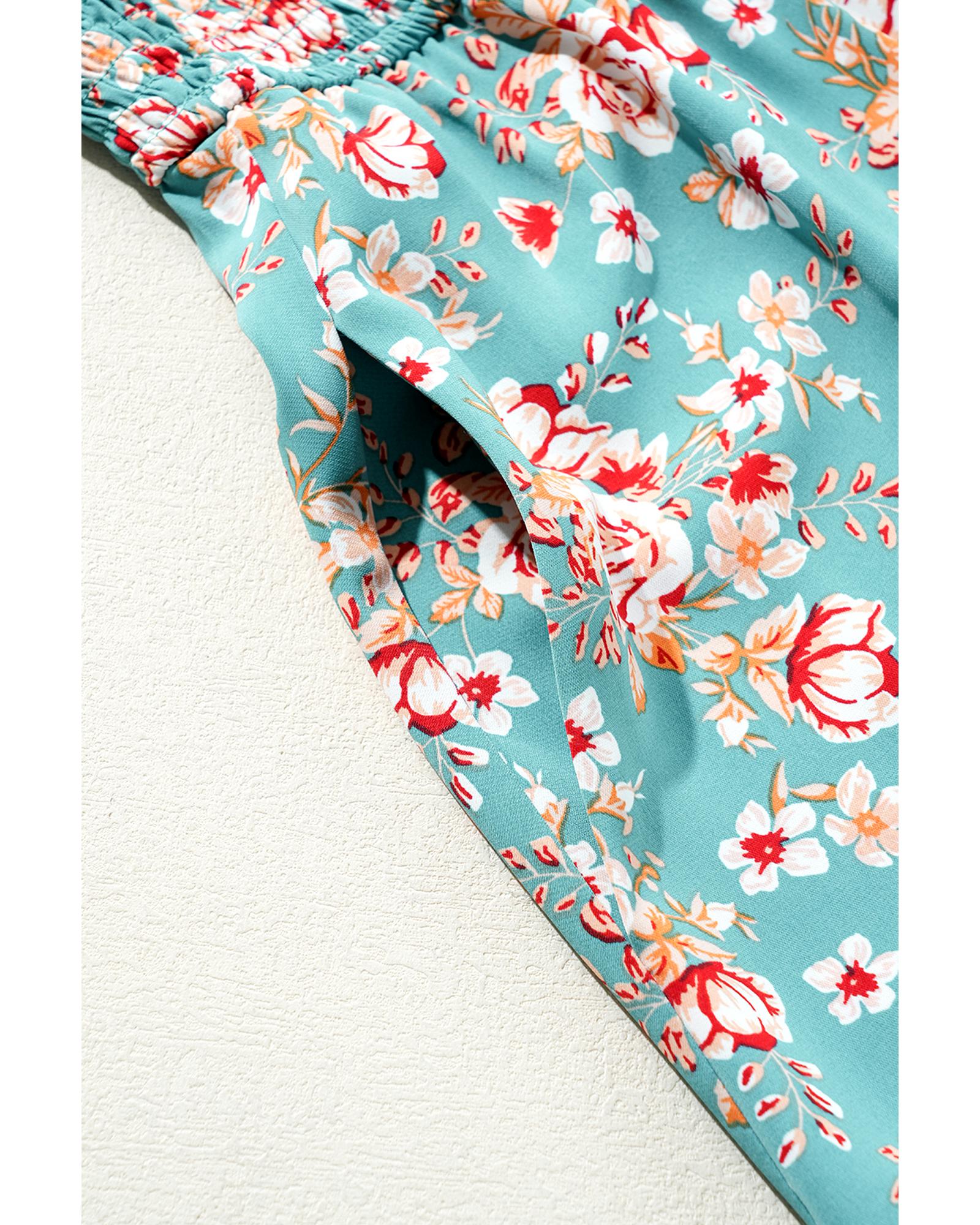 • Green Plus Size Floral Print Square Neck Smocked Maxi Dress