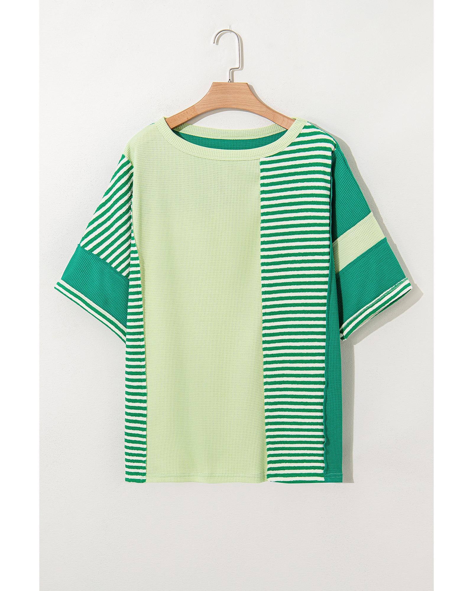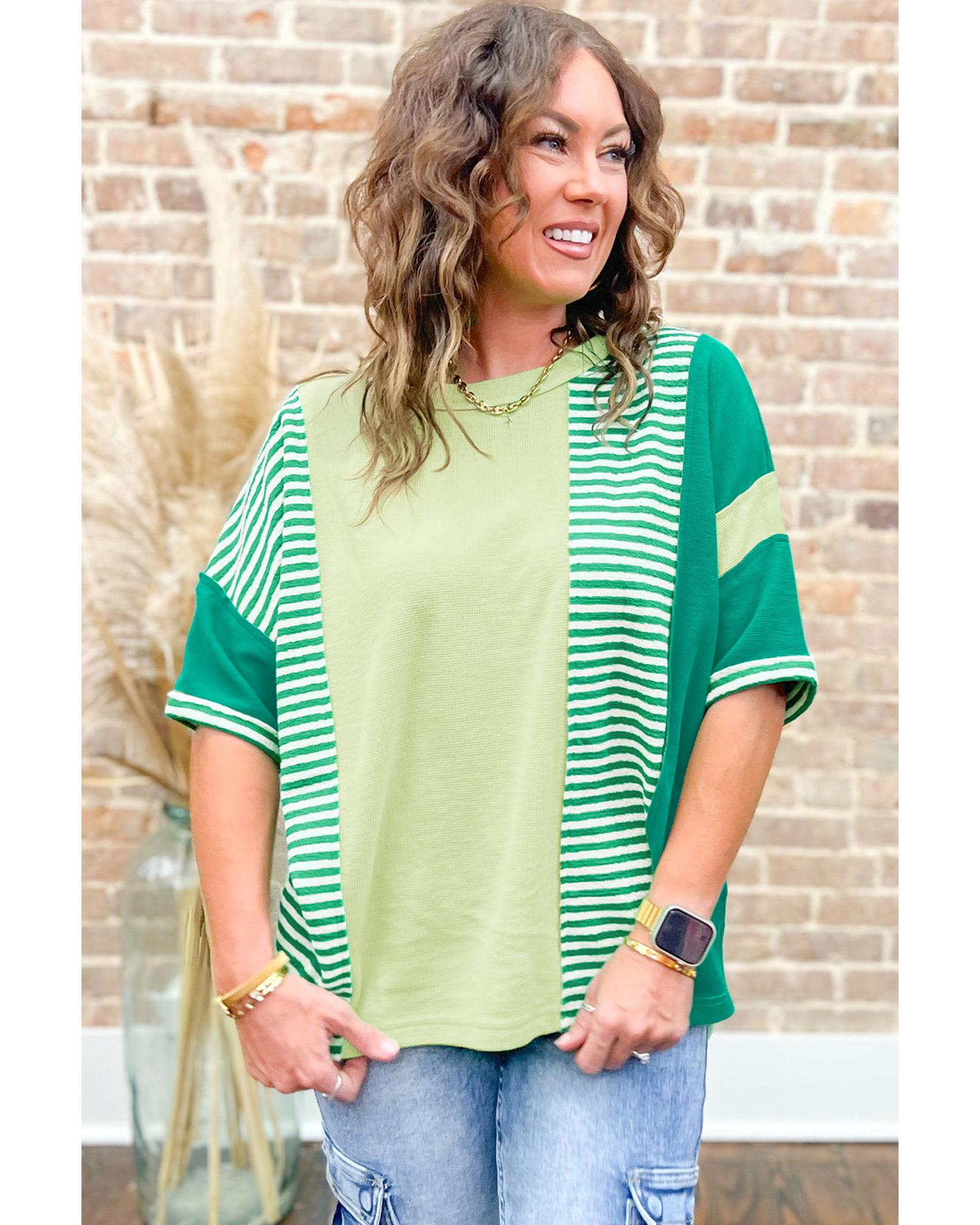 Green Stripe Patchwork Colorblock Plus Size T Shirt – 4X