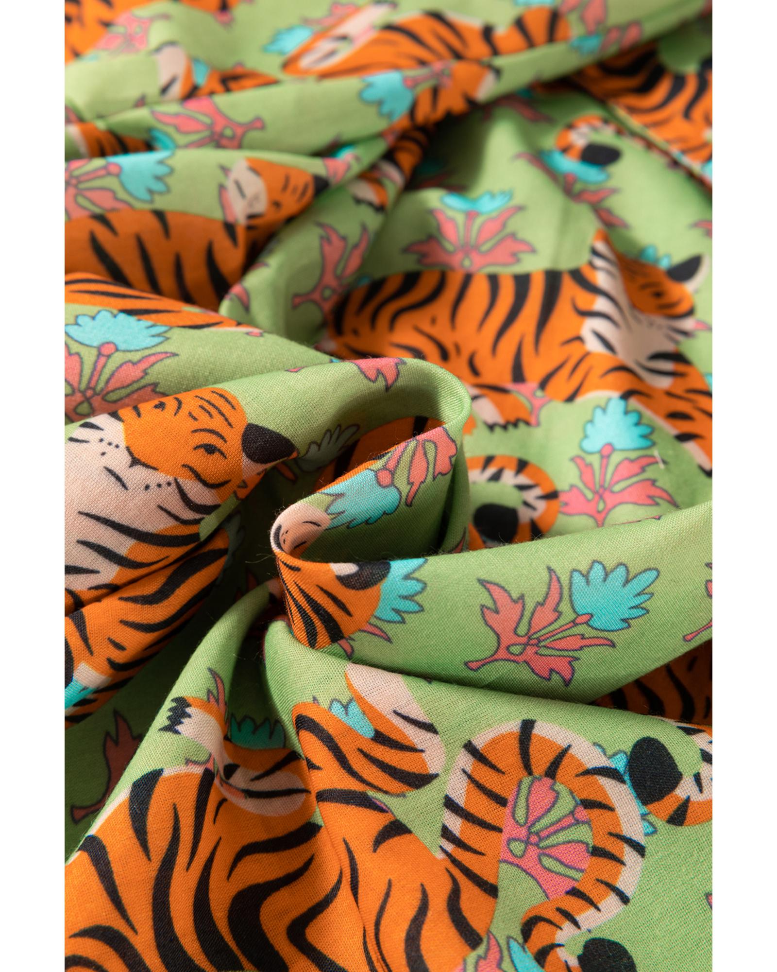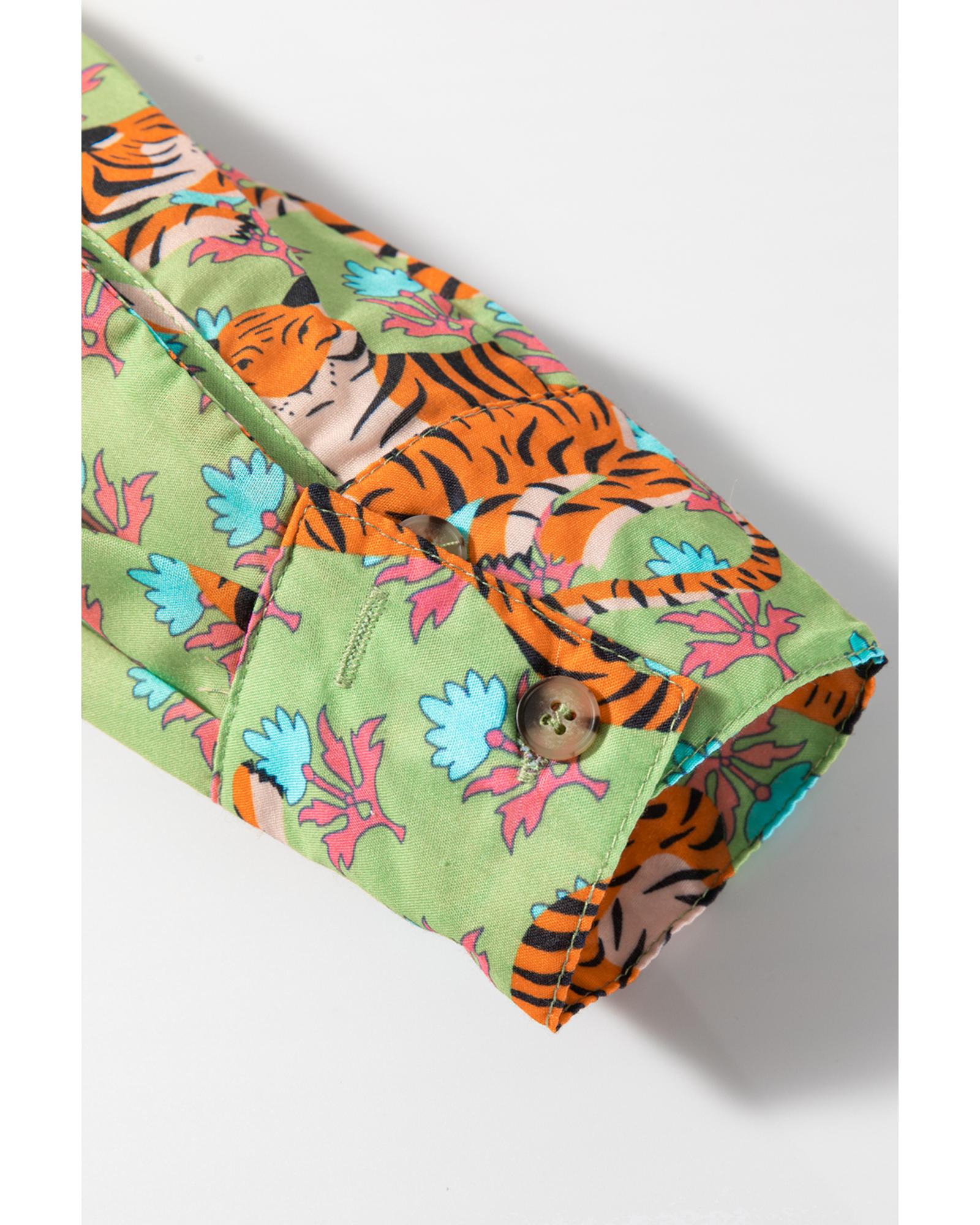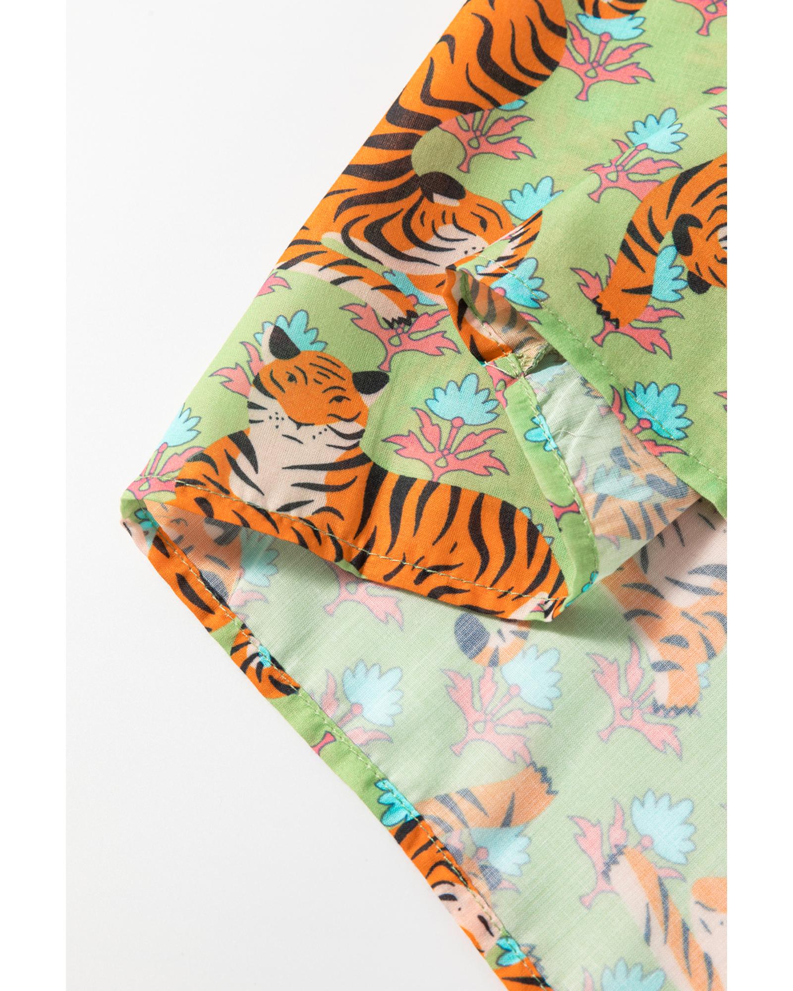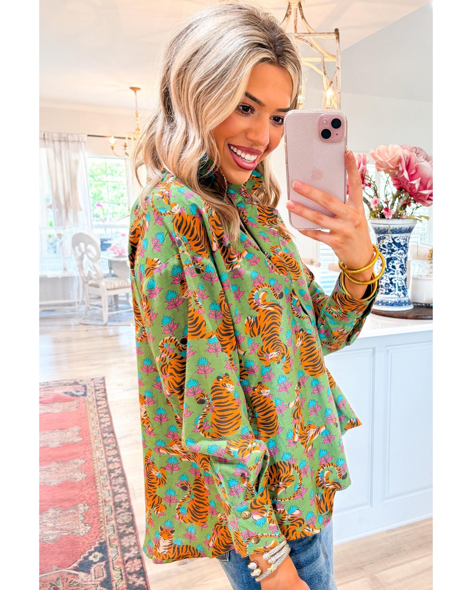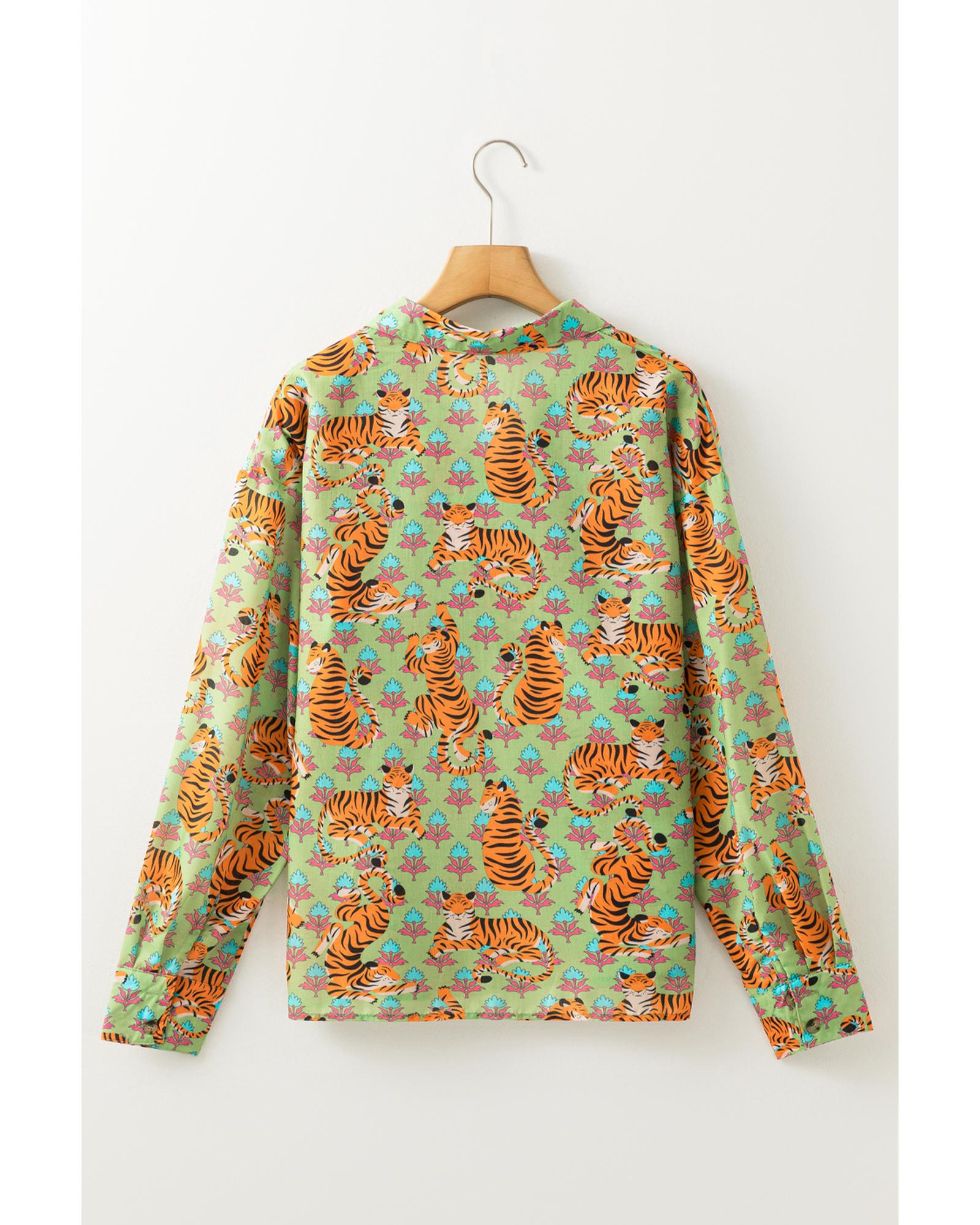 Green Tiger Floral Printed Collared V Neck Casual Shirt – M