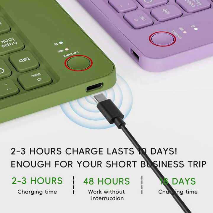 Extended Battery Life: Features a built-in 210mAh rechargeable battery providing up to 48 hours of continuous typing or an impressive 180 days of standby time.