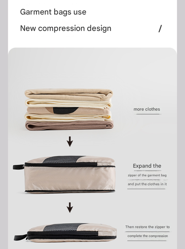 Streamline your packing and revolutionize the way you travel with our versatile 6-Piece Compression Packing Cube Set. Designed to keep your clothes, shoes, and toiletries impeccably organized and compressed, this set is an essential companion for any journey, helping you fit more into your suitcase while keeping everything neat and easy to find. Crafted from durable, lightweight polyester, these organizers are built for efficient travel.