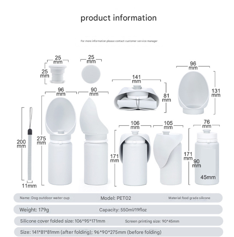- Generous Capacity: Holds up to 550ml (approximately 19 fl.oz) of water, ensuring your pet has enough hydration for extended outings.