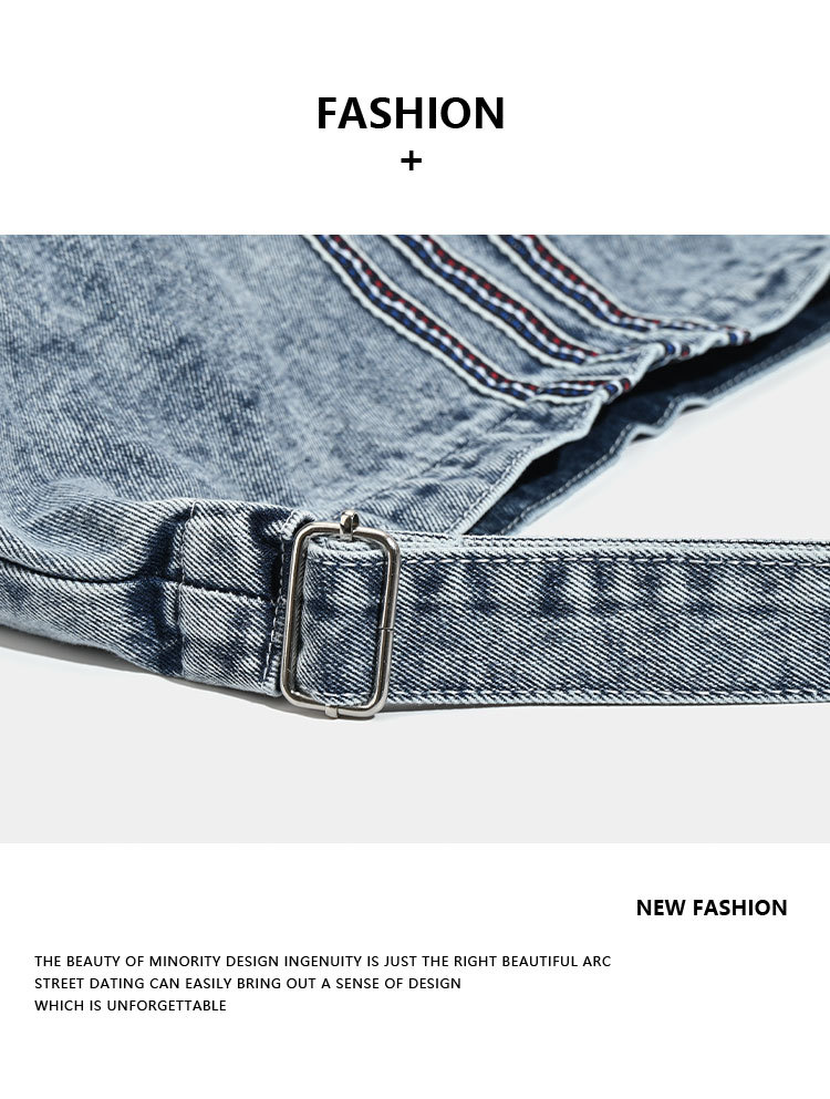 - Chic Design Details: The bag showcases a subtle yet stylish striped accent on the front, adding a touch of uniqueness to its classic denim appeal.
