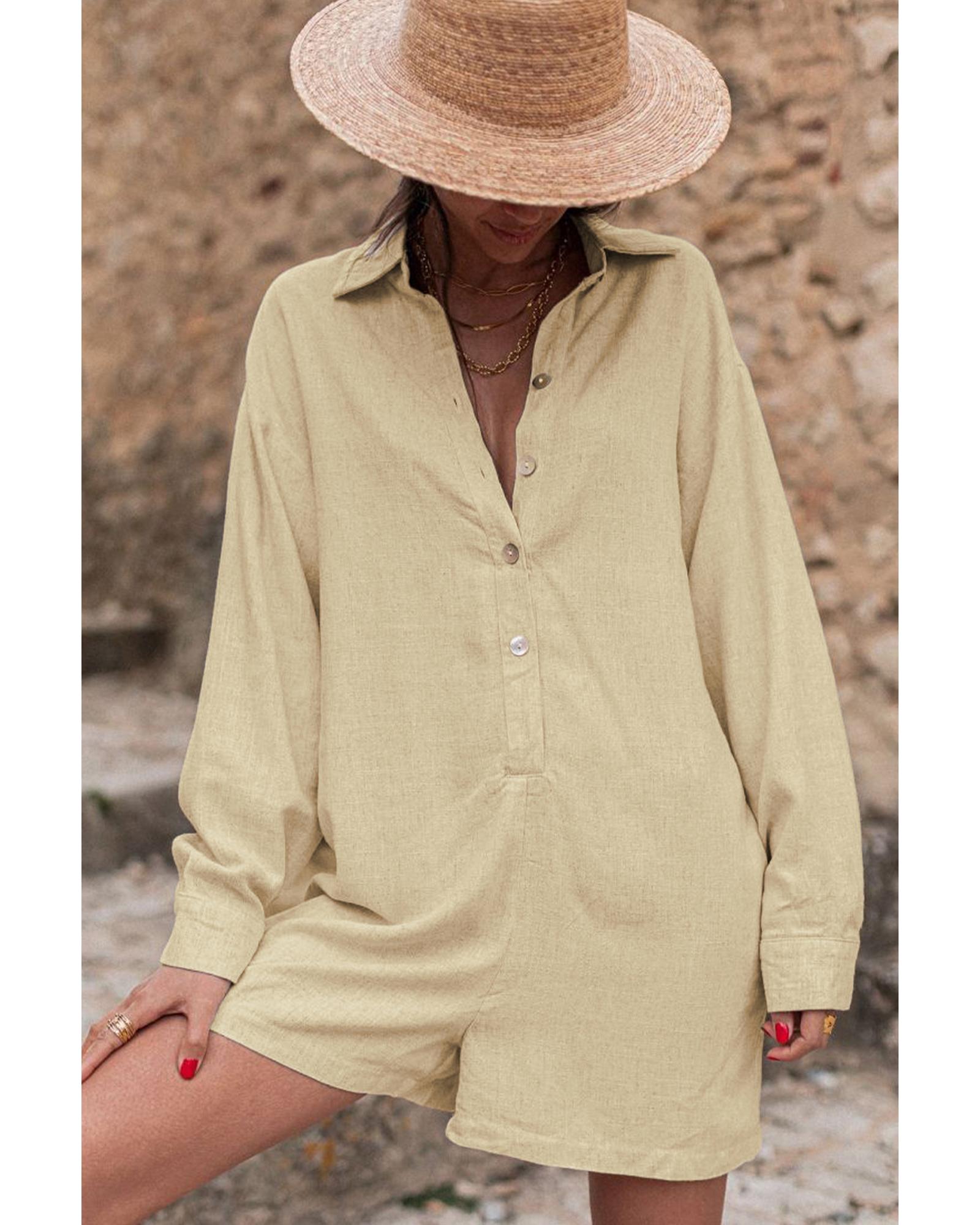 Half Button Shirt Collar Long Sleeve Loose Romper – L