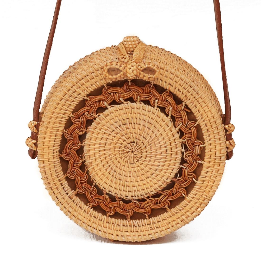 Handmade Sunflower Rattan Bag Vintage Art Beach Diagonal Bag 20X20X8Cm