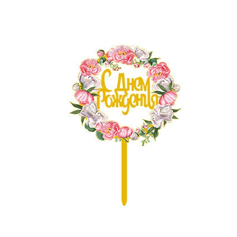 Happy Birthday Anniversary Wedding Cake Flowers Topper Acrylic Party Decorations – NO.08