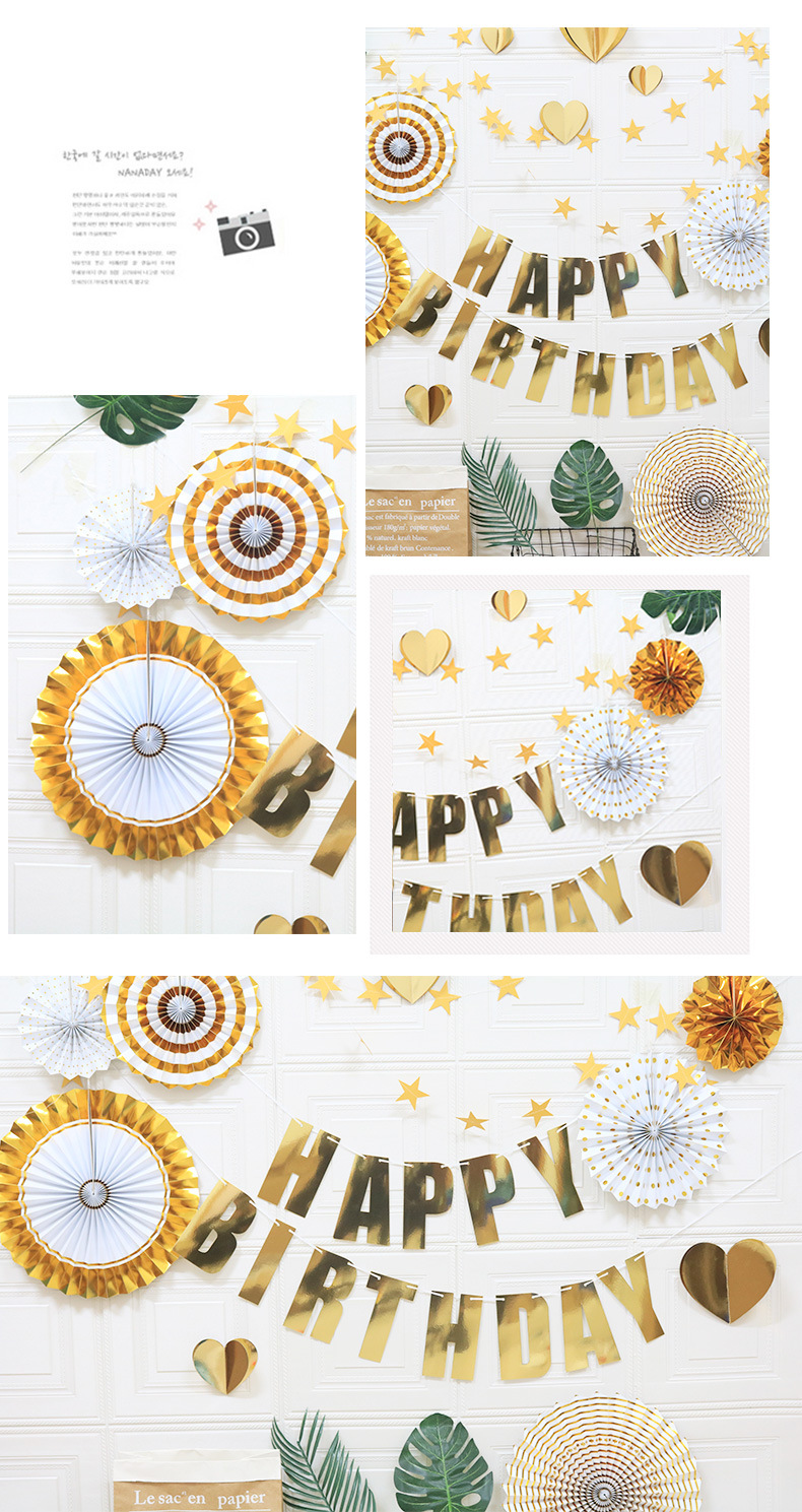 Happy Birthday Party Decoration Set – Fan Decorations, Hearts, Stars & Banner