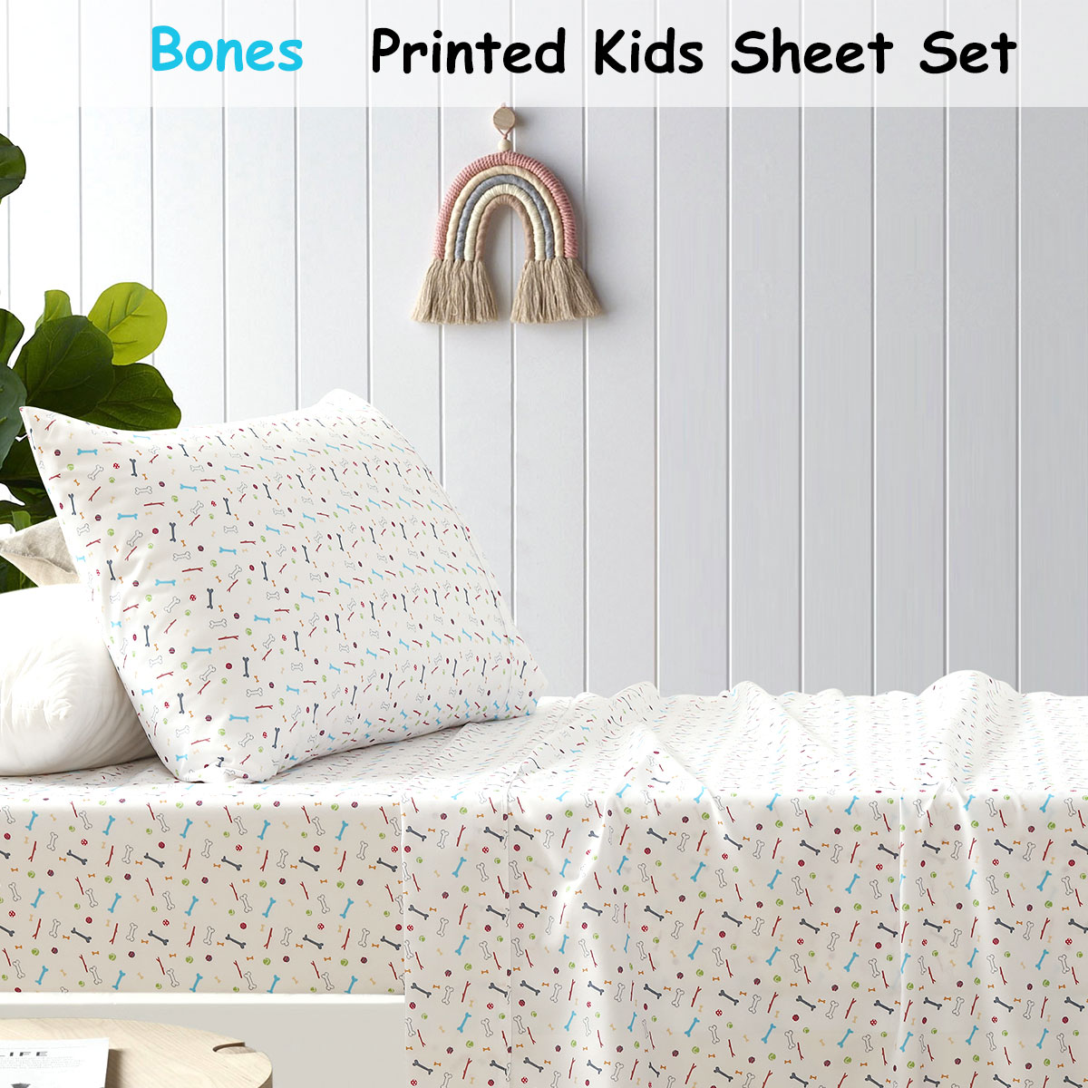 Add extra style to your kids bed with this Bones Kids Printed Sheet Set by Happy Kids. A bright and fun printed microfibre sheet set that features little bones design in soft colour hues of white, black, grey, red, blue, pink, and green that will create a fresh space for your kids. Great value for money! It is made from quality and soft touch Polyester fabric in 180 Thread Count.