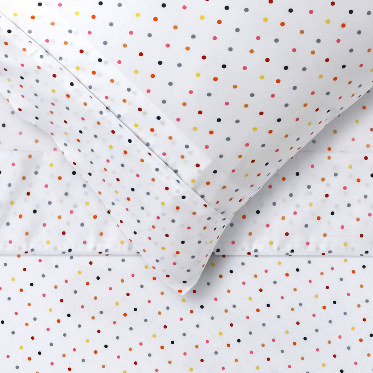 Add extra style to your kids bed with Polka Multi Printed Microfibre Sheet Set by Happy Kids, a bright and fun printed microfibre sheet set. Great value for money! It features tiny polka dots design printed in white, black, grey, red, orange, yellow, and pink colour tones. It is made from quality and easy care microfiber polyester with softness you can enjoy all night long.