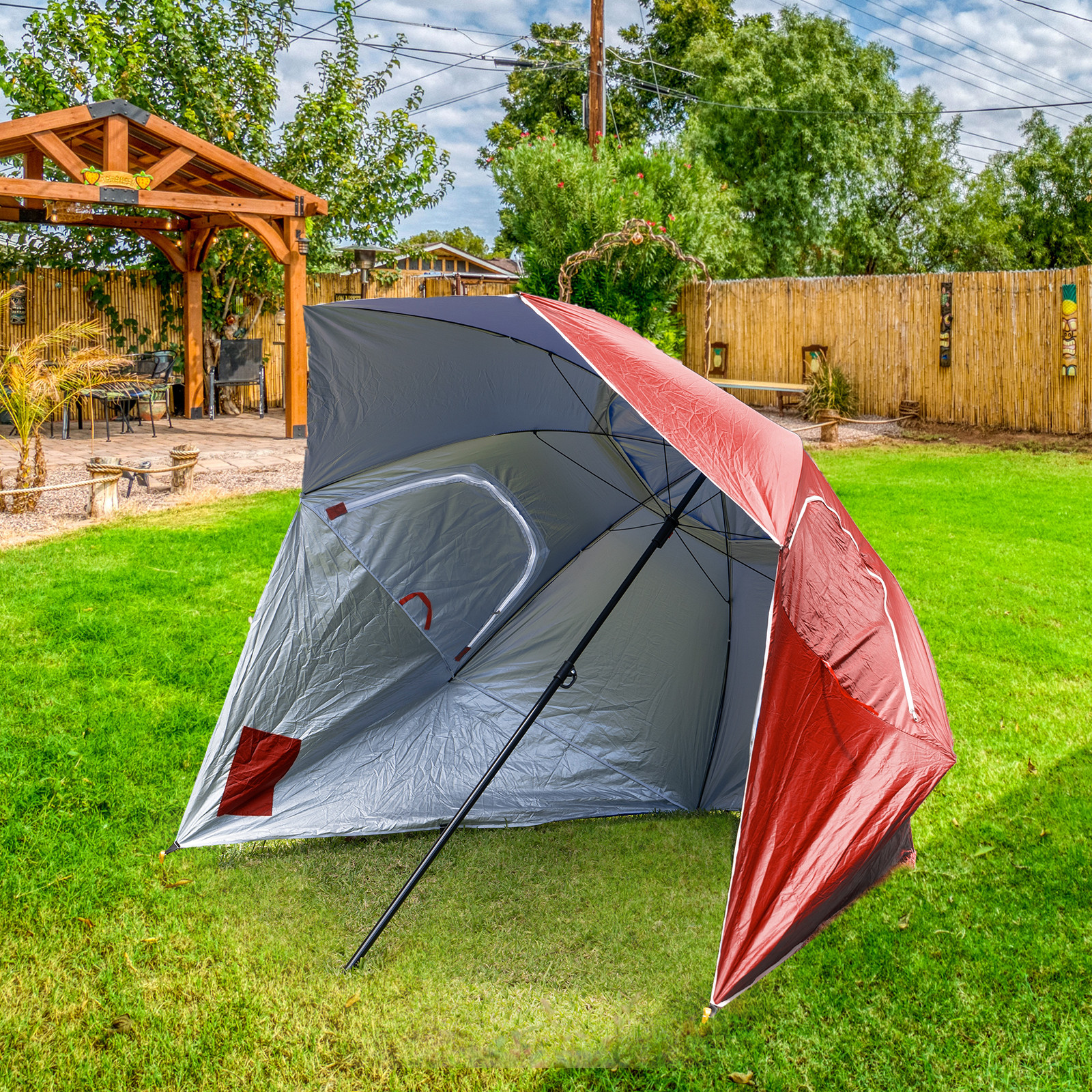 - Huge coverage with an eight-foot (240cm) pitched surface area