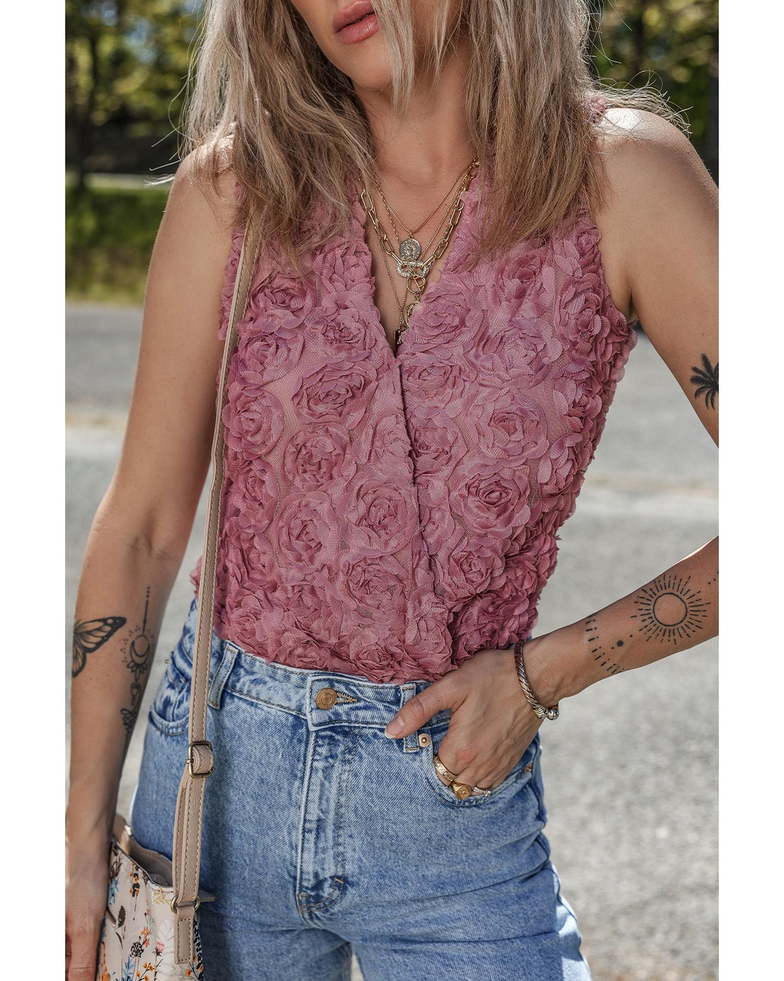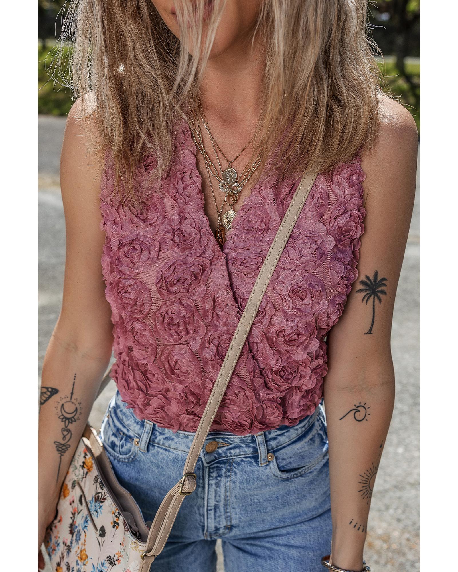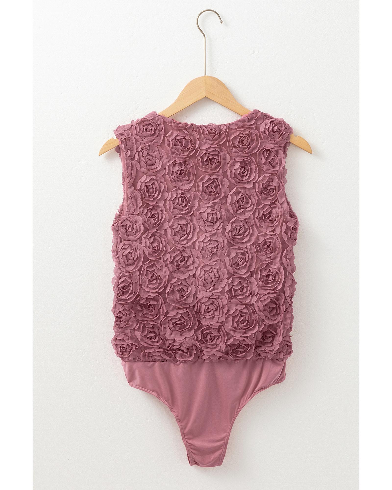 Heather Floral Textured V Neck Wrapped Sleeveless Bodysuit – XL