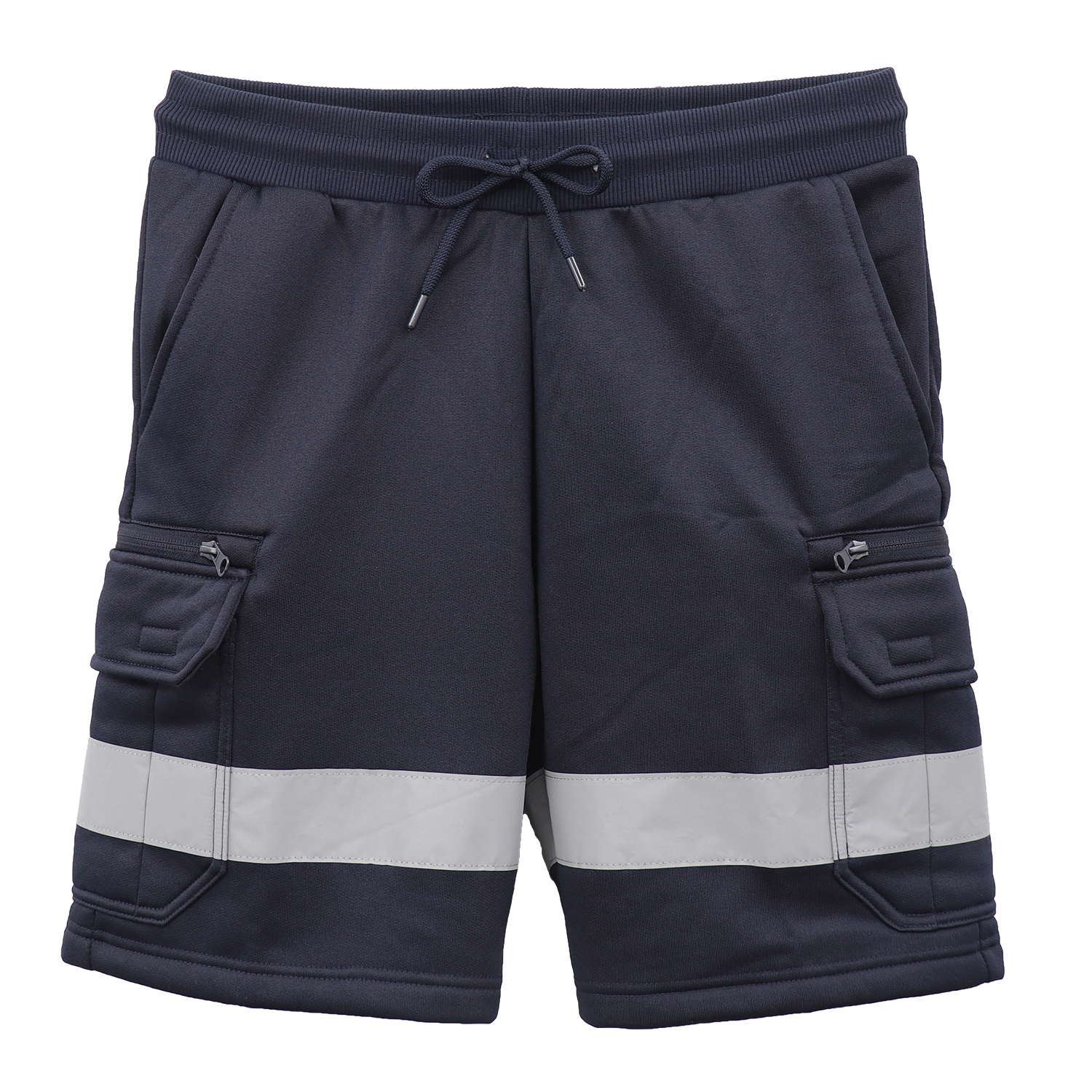 Hi Vis Fleece Work Cargo Shorts w Reflective Tape Workwear Tradie Utility Pants, Navy, 2XL